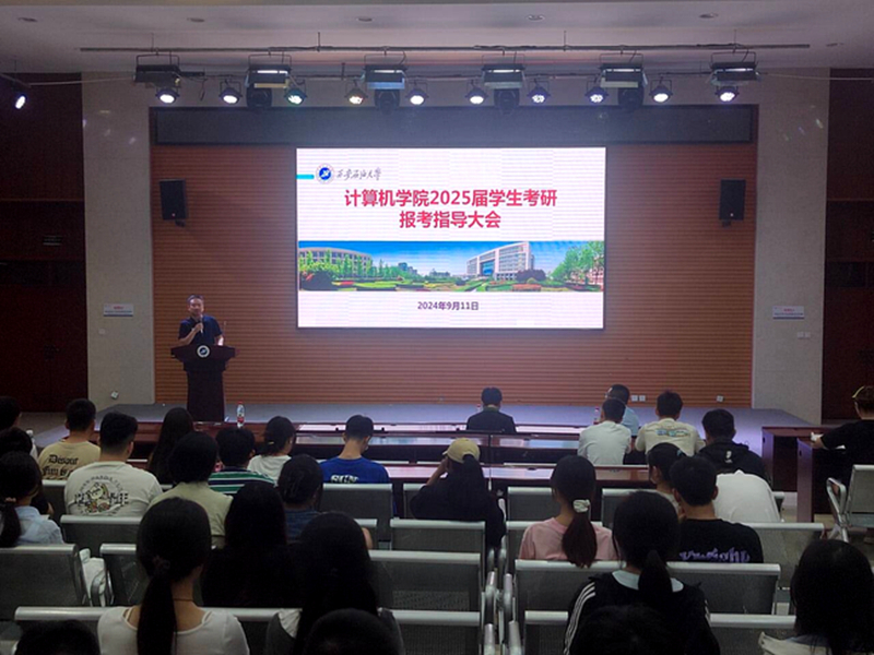為進(jìn)一步幫助2025屆學(xué)生認(rèn)清當(dāng)前考研形勢(shì),明確個(gè)人考研目標(biāo),合理選擇院校,激發(fā)考研自信心與積極性,9月11日晚,計(jì)算機(jī)學(xué)院在崇文樓118報(bào)告廳舉辦2025屆學(xué)生考研報(bào)考指導(dǎo)大會(huì)。院長劉志坤、黨委副書記龐遠(yuǎn)、副院長張留美、2021級(jí)輔導(dǎo)員李路及120名擬考研學(xué)生參加了本次會(huì)議。