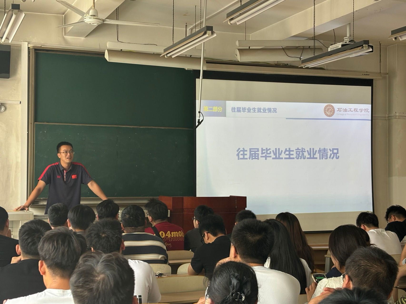 為積極應(yīng)對當(dāng)下的嚴(yán)峻就業(yè)形勢,9月14日上午,石油工程學(xué)院于雁塔校區(qū)第二教學(xué)樓1006教室開展2025屆畢業(yè)生就業(yè)考博動(dòng)員大會(huì),輔導(dǎo)員宋興淼主持會(huì)議,2025屆全體碩士畢業(yè)生參會(huì)。