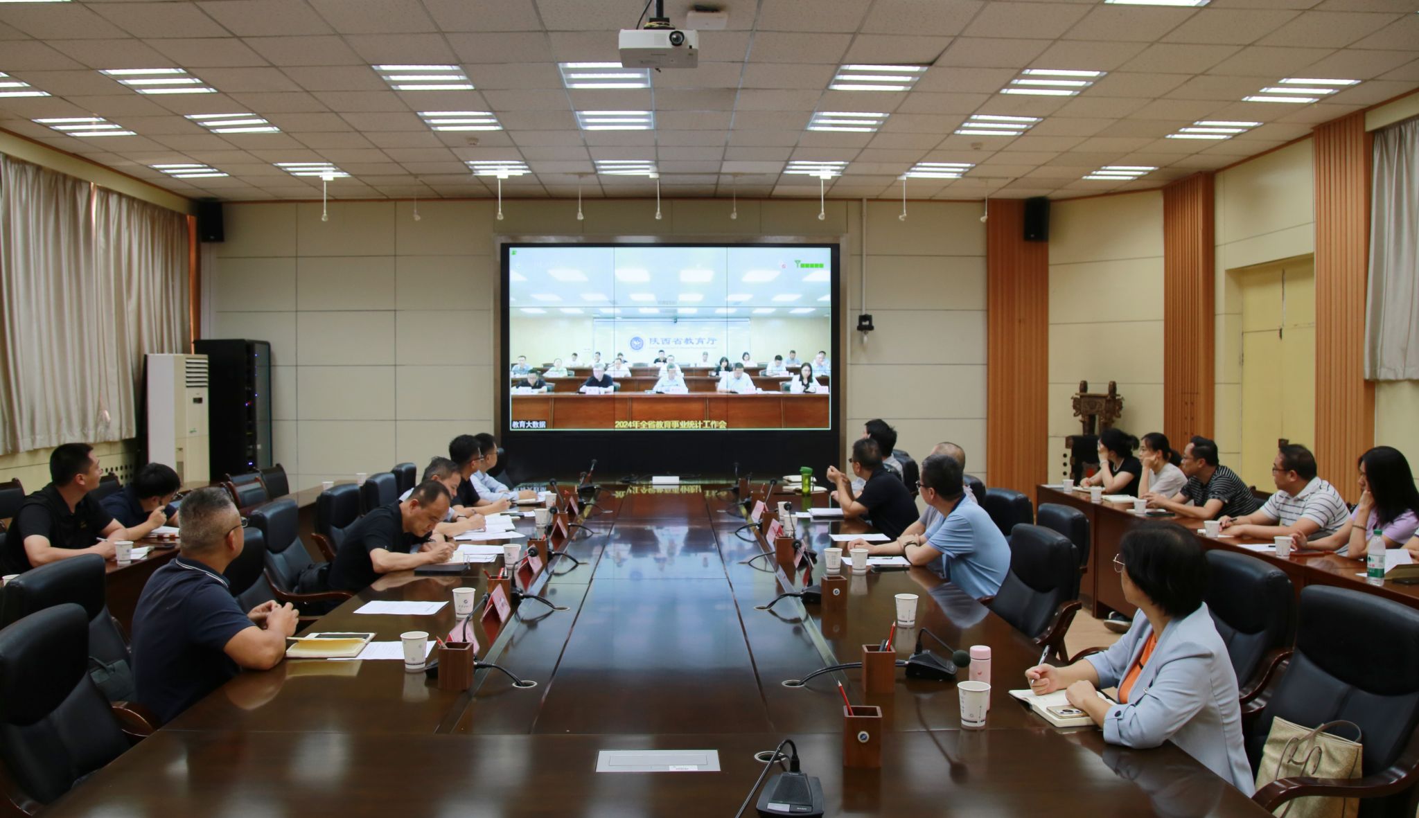 會(huì)前,全體與會(huì)人員在我校分會(huì)場(chǎng)參加了2024年全省教育事業(yè)統(tǒng)計(jì)工作視頻會(huì)。