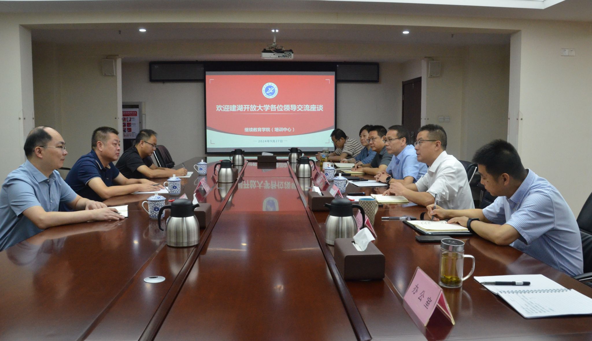 朱長安對學院的熱情接待表示感謝,并簡要介紹了本次來訪的目的,并從學校發(fā)展歷程、師資隊伍建設、學歷繼續(xù)教育招生、人才培養(yǎng)等方面介紹了建湖開放大學的基本情況。他期待未來雙方能建立更加密切的合作關系,在同等學力申請碩士學位招生培養(yǎng)、學歷繼續(xù)教育教學點等方面取得更大的合作成果,不斷推動雙方合作走深走實。