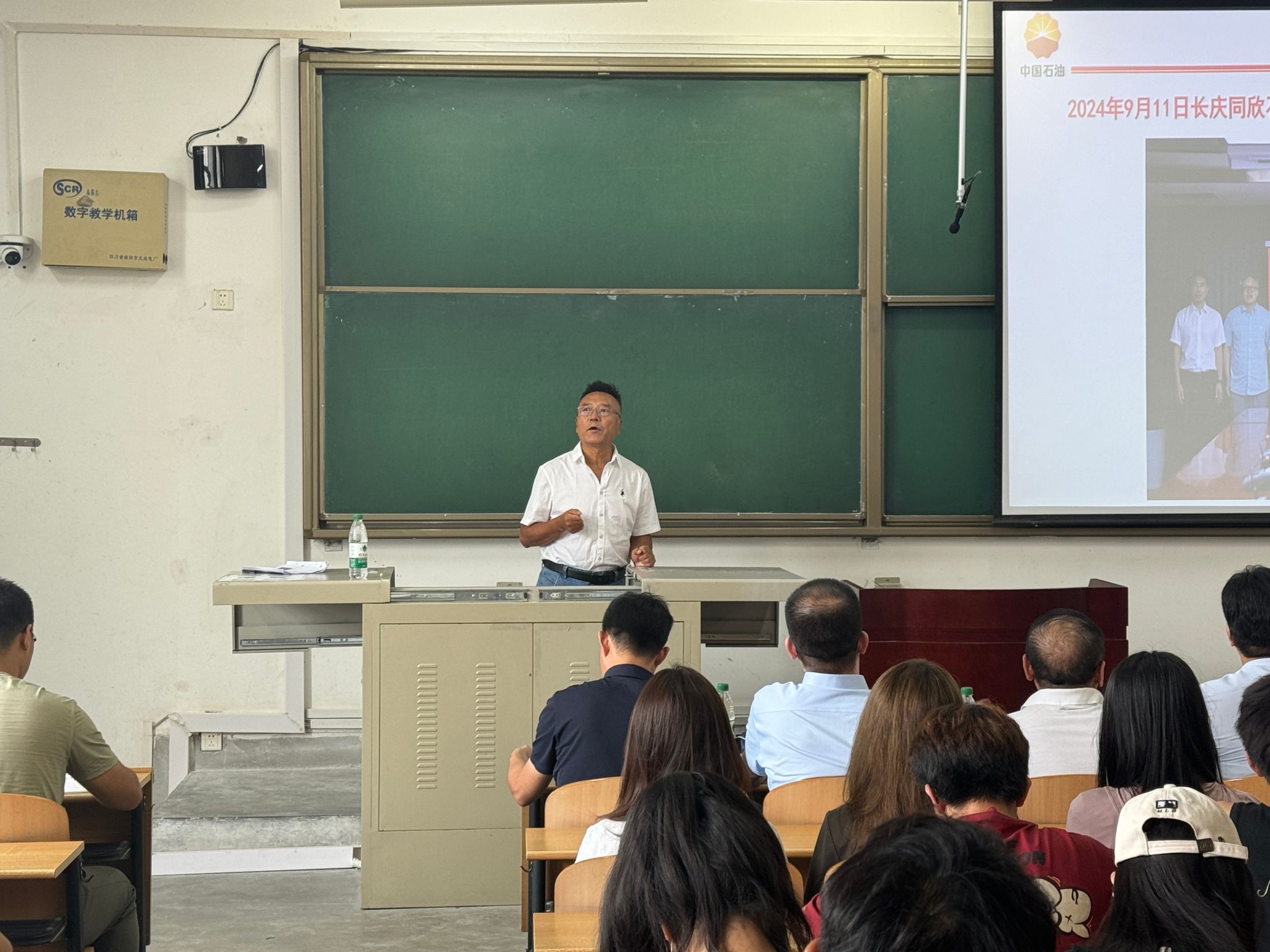 座談會后,梁常寶應(yīng)邀作了題為“鄂爾多斯盆地與天然氣開發(fā)”的學(xué)術(shù)報告,本次報告由輔導(dǎo)員靳晨璐主持,學(xué)院師生代表共計100余人參加此次報告會。梁常寶結(jié)合自身的油田經(jīng)歷從鄂爾多斯盆地演化、氣田地質(zhì)特征、天然氣開發(fā)技術(shù)、工廠化壓裂試氣工藝技術(shù)等方面開展了詳細講述,隨著勘探領(lǐng)域由常規(guī)到非常規(guī)、淺層到深層深入,鄂爾多斯盆地逐漸展現(xiàn)出一批新領(lǐng)域、新類型天然氣藏,并基于近年來的勘探成果,實現(xiàn)了重大突破。最后,他勉勵同學(xué)們在學(xué)習(xí)上要夯實基礎(chǔ)、勤奮努力,不斷提高自身專業(yè)能力,在專業(yè)領(lǐng)域持續(xù)深耕,積極投身到我國的新能源行業(yè)建設(shè)當(dāng)中去。
