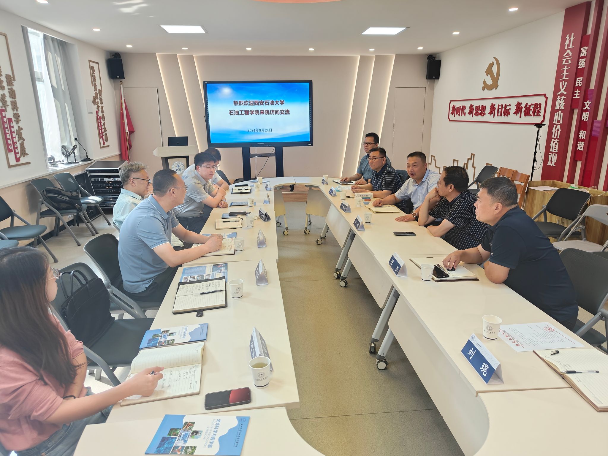 9月24日上午,石油工程學(xué)院黨委書記司馬文龍、黨委副書記張浩然、副院長王琛、蔡文斌,輔導(dǎo)員宋興淼、程麗杰一行前往西北大學(xué)醫(yī)學(xué)院調(diào)研交流。此次調(diào)研交流旨在深入了解西北大學(xué)醫(yī)學(xué)院人才培養(yǎng)方面的特色亮點和經(jīng)驗做法,以為我院本碩連讀創(chuàng)新班的人才培養(yǎng)提供借鑒和啟示。