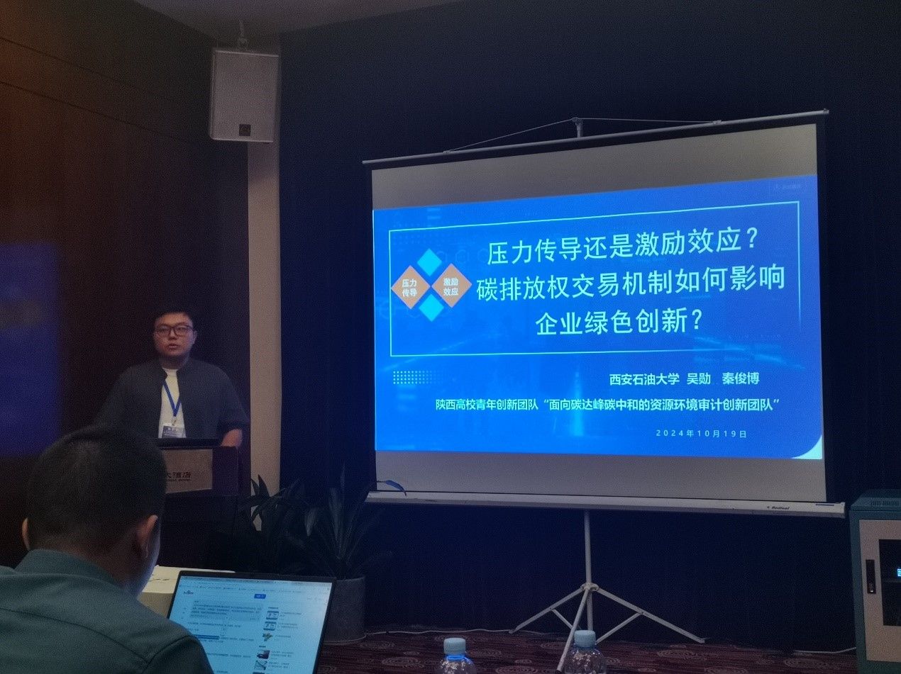 秦俊博同學(xué)作了題為《壓力傳導(dǎo)還是激勵(lì)效應(yīng)?碳排放權(quán)交易機(jī)制如何影響企業(yè)綠色創(chuàng)新》的專題報(bào)告。該報(bào)告以試點(diǎn)省市A股上市公司為研究樣本,通過多時(shí)點(diǎn)雙重差分法,實(shí)證檢驗(yàn)了碳排放權(quán)交易機(jī)制對(duì)企業(yè)綠色創(chuàng)新的影響,并通過激勵(lì)效應(yīng)和壓力傳導(dǎo)兩個(gè)維度研究了碳排放權(quán)交易機(jī)制綠色創(chuàng)新效應(yīng)的作用路徑。