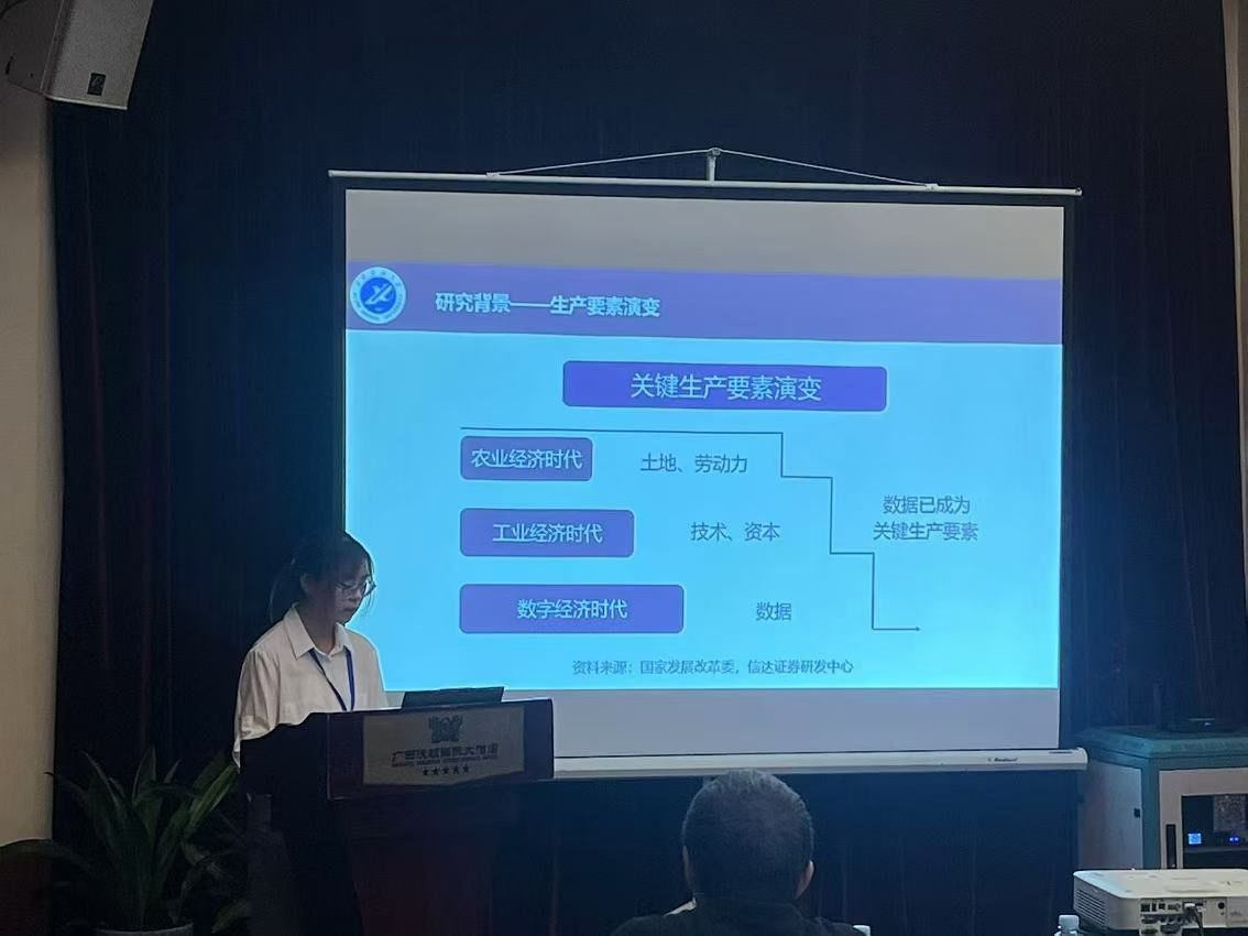 趙花花同學(xué)作了題為《數(shù)據(jù)要素市場(chǎng)化如何影響企業(yè)綠色全要素生產(chǎn)率——基于數(shù)據(jù)交易平臺(tái)的準(zhǔn)自然實(shí)驗(yàn)》的專題報(bào)告。該研究基于新發(fā)展理念的指導(dǎo)從綠色視角出發(fā)剖析數(shù)據(jù)要素市場(chǎng)化對(duì)企業(yè)綠色全要素生產(chǎn)率的影響。