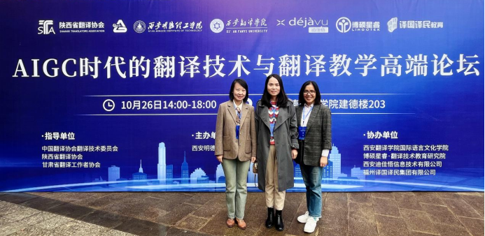 “AIGC時代的翻譯技術(shù)與翻譯教學”高端論壇于10月26日在西安成功舉辦,本次論壇由中國翻譯協(xié)會翻譯技術(shù)委員會、陜西省翻譯協(xié)會及甘肅省翻譯工作者協(xié)會指導,西安明德理工學院語言文化傳播學院主辦,西安翻譯學院國際語言文化學院、博碩星睿翻譯技術(shù)教育研究院、西安迪佳悟信息技術(shù)有限公司及福州譯國譯民集團有限公司協(xié)辦。此次論壇匯聚了來自翻譯技術(shù)與教學領(lǐng)域的知名專家學者,外國語學院教師原愛紅、李芳蕾、拓葳參加了本次論壇。