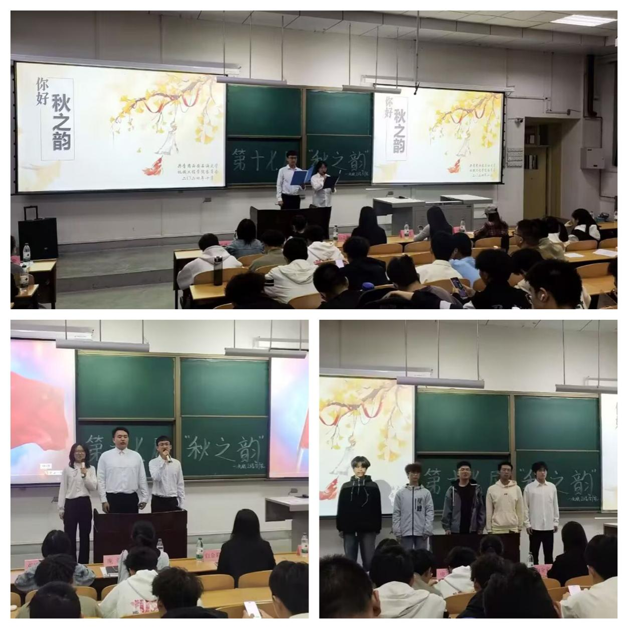 為構(gòu)建書香校園,提升學(xué)生審美素養(yǎng),展示其藝術(shù)才華及精神面貌,真正實現(xiàn)以美育人、以文化人,10月28日晚,機(jī)械工程學(xué)院團(tuán)委、學(xué)生會于博覽樓A234教室舉辦第十七屆 “秋之韻”詩文配樂朗誦比賽。院團(tuán)委書記、學(xué)工辦主任王璟,2023級輔導(dǎo)員龐蓉、2024級輔導(dǎo)員白金莉及2024級全體學(xué)生參加。