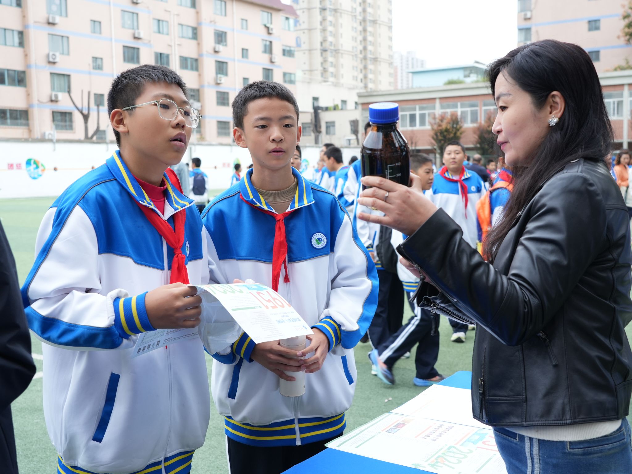 活動現(xiàn)場,老師正在向同學們講解原油樣品