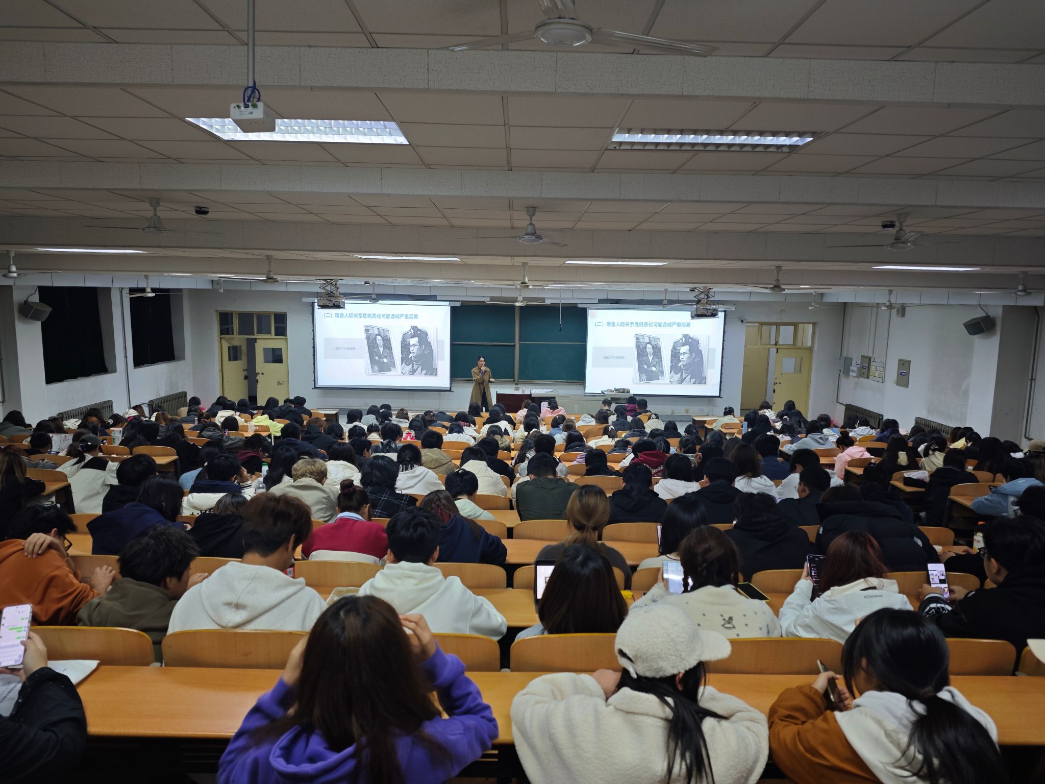 講座以《換還是不換——宿舍人際沖突的處理》為題,從宿舍人際關(guān)系的重要性、大學(xué)宿舍矛盾產(chǎn)生的原因、正確認識人際沖突、應(yīng)對宿舍人際沖突的三個溝通錦囊四個方面進行講解。趙老師通過真實案例引入宿舍人際關(guān)系問題的思考,邀請同學(xué)發(fā)言表達自己的看法,引發(fā)同學(xué)們關(guān)于宿舍人際關(guān)系重要性的共鳴,激起同學(xué)們對積極處理宿舍人際關(guān)系的熱情。通過分析宿舍關(guān)系發(fā)展不同時期,剖析同學(xué)們在進入大學(xué)前后對宿舍生活想象和真實情景之間有所差異的原因,得出宿舍矛盾發(fā)生的一系列誘發(fā)因素,向大家傳授解決經(jīng)驗,助力大家營造良好的宿舍氛圍,共度和諧、平穩(wěn)、歡樂的大學(xué)生活。