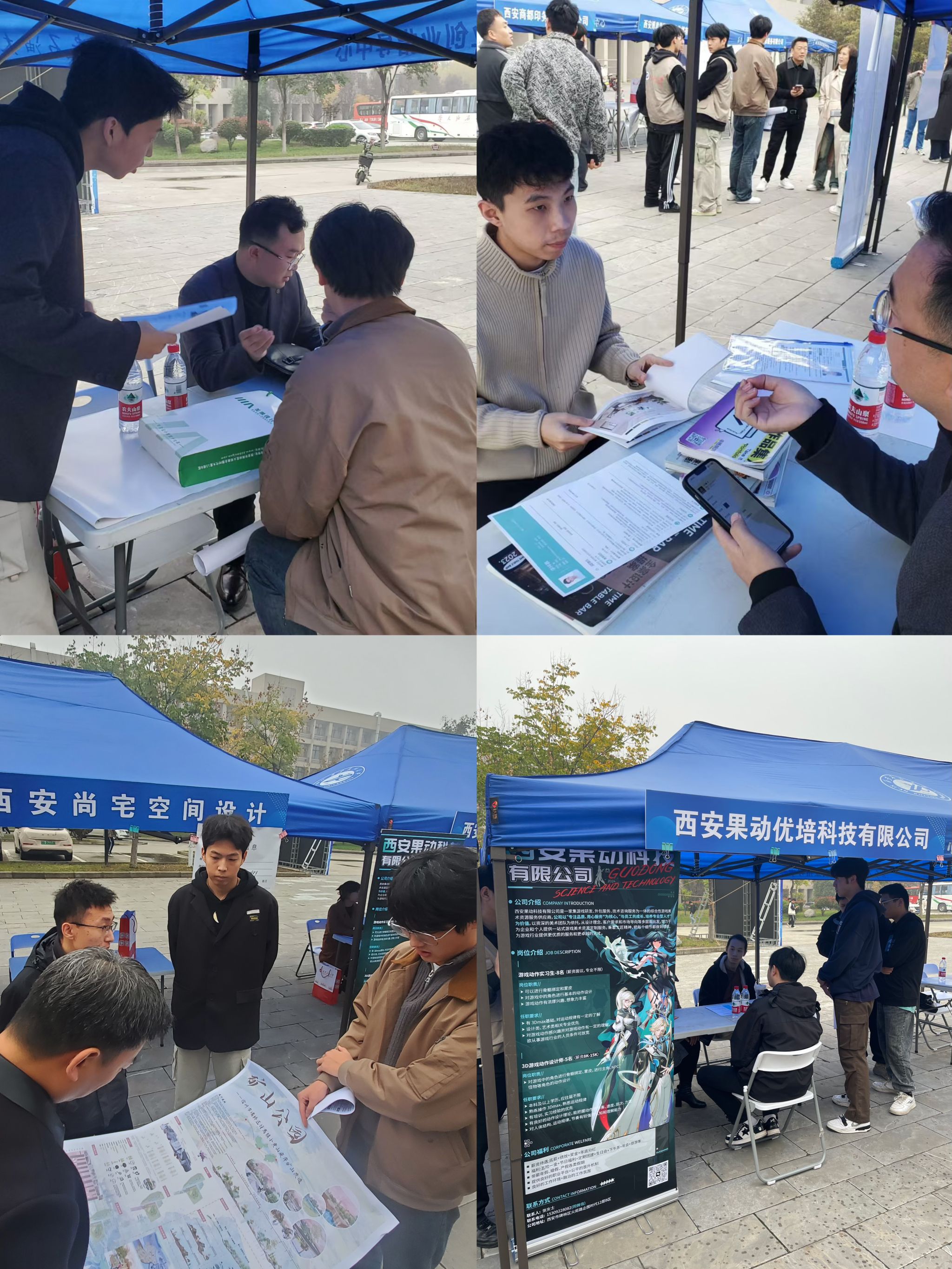為拓寬畢業(yè)生就業(yè)渠道,搭建用人單位與設計專業(yè)畢業(yè)生的雙向交流平臺,11月1日上午,在西安石油大學就業(yè)指導中心的大力支持下,人文學院攜手西安美果教育科技有限公司,在鄠邑校區(qū)江漢林廣場聯(lián)合舉辦設計類專場招聘會。人文學院黨委書記余小勇、全體學工干部全程參會,與用人單位及畢業(yè)班學生進行深入的溝通交流,并給予現(xiàn)場指導。