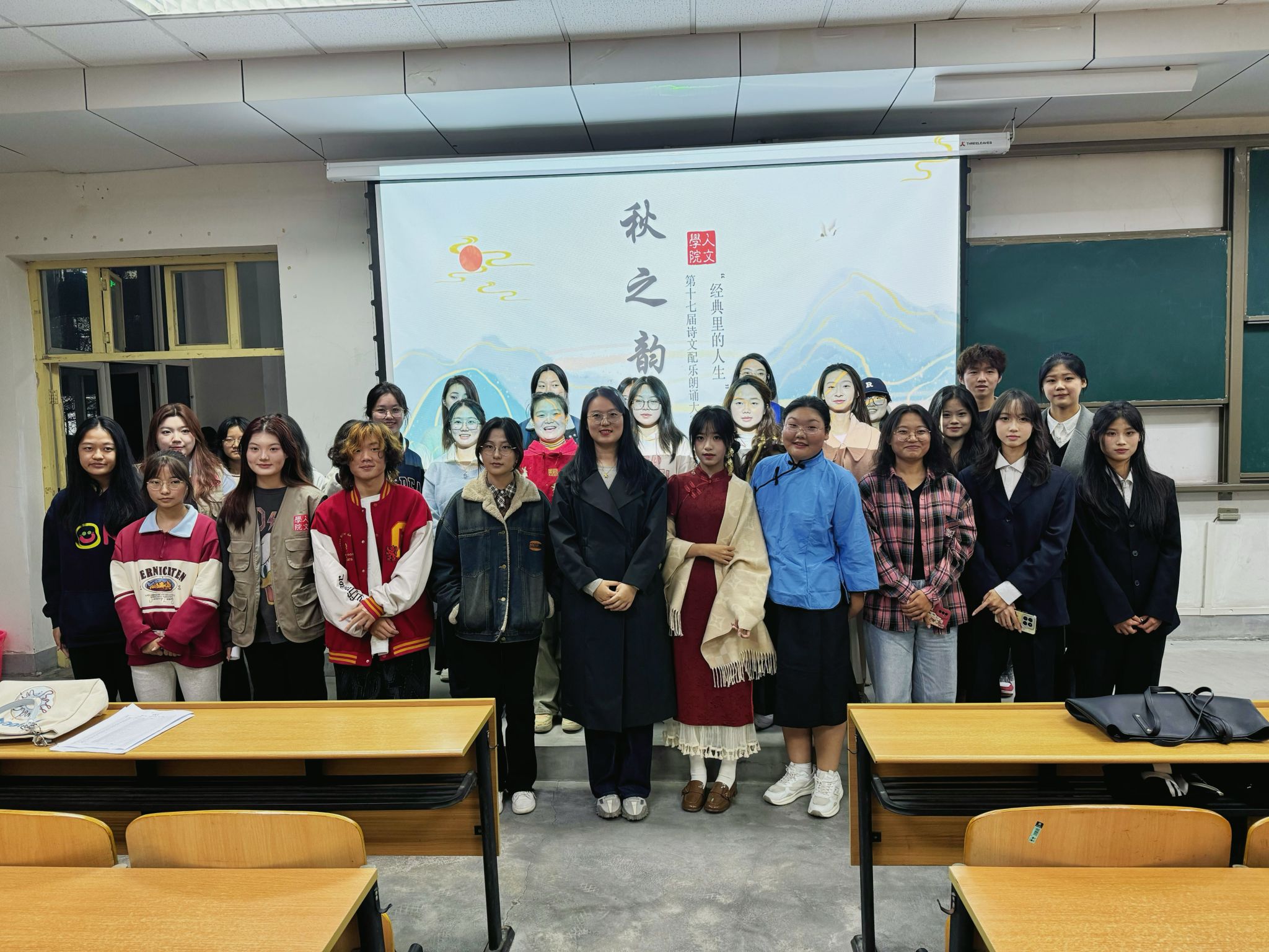 為進(jìn)一步加強(qiáng)我校校園美育環(huán)境建設(shè),完善美育體系,提高學(xué)生的審美和人文素養(yǎng)。10月31日晚,人文學(xué)院在鄠邑校區(qū)博覽樓A139教室開展了第十七屆“秋之韻”詩文配樂朗誦院系初賽,2024級(jí)輔導(dǎo)員樊煜及全體學(xué)生參加此次活動(dòng)。