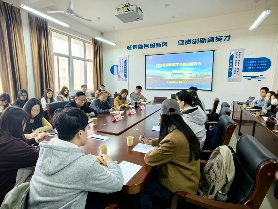 為持續(xù)改進和加強學風建設,營造良好校園學習氛圍,共建積極向上、踏實認真、好學力行的良好學習風氣,優(yōu)化學風建設長效機制,經(jīng)濟管理學院于11月4日下午在崇文樓305會議室召開學風建設座談會。經(jīng)濟管理學院黨委書記談建勤、院長王君萍、黨委副書記楊生強,學生工作辦公室主任李博文、各年級輔導員及學生代表參會。