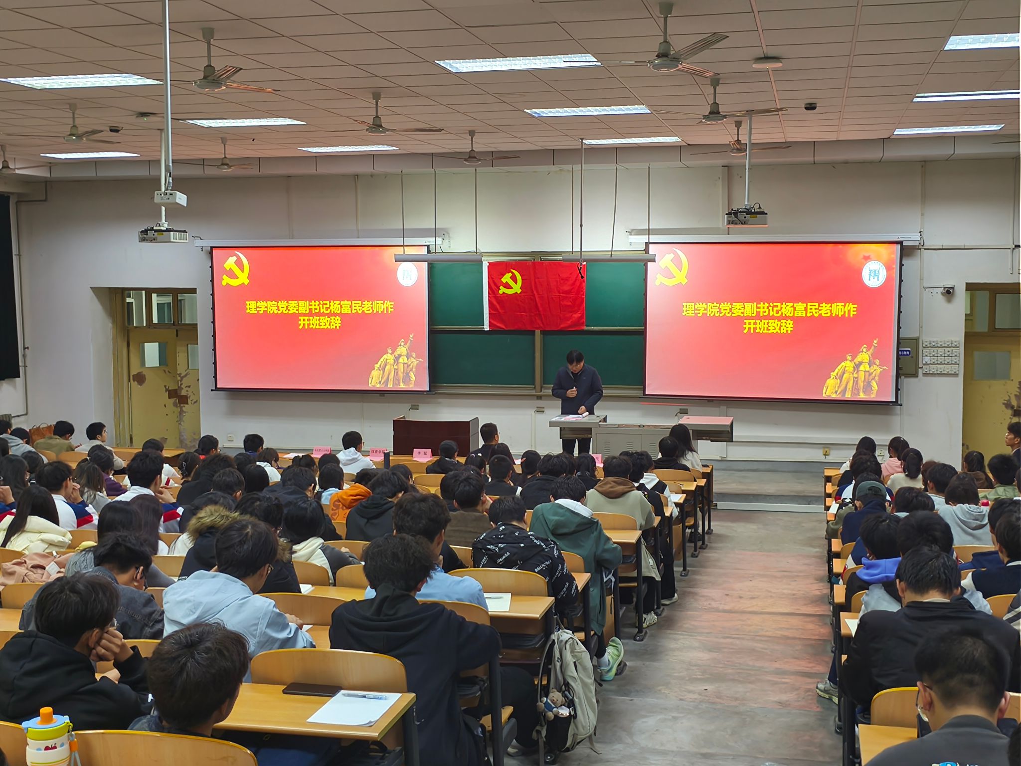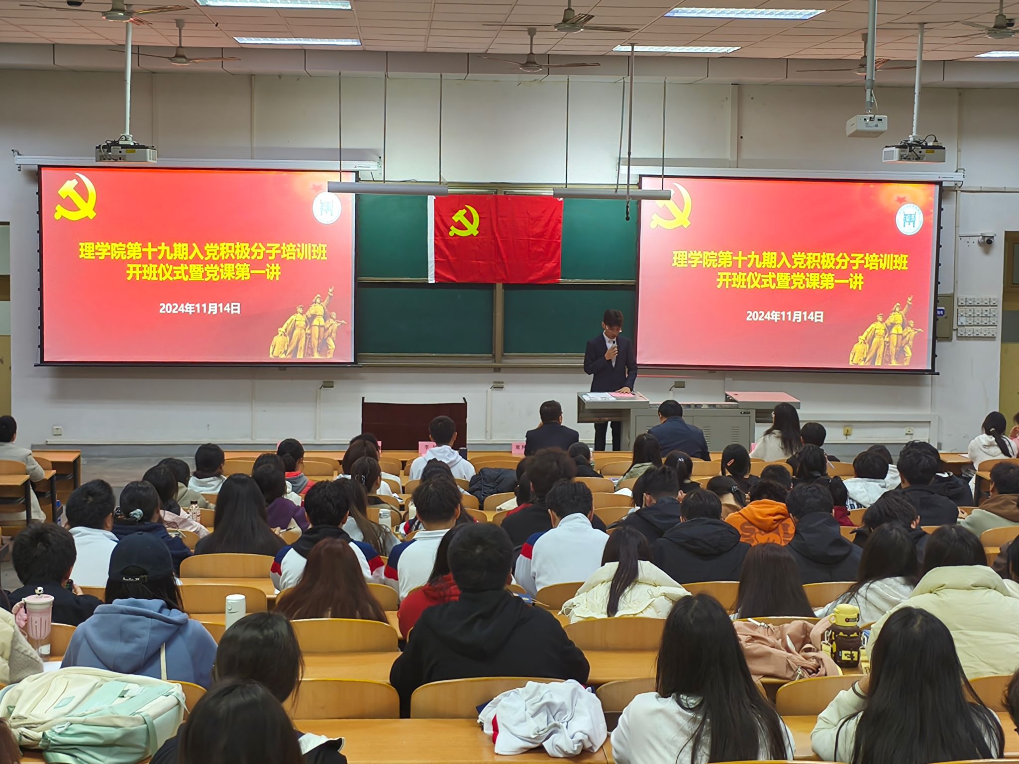 11月14日晚,理學(xué)院、馬克思主義學(xué)院、體育學(xué)院聯(lián)合舉辦的第十九期入黨積極分子培訓(xùn)班在博覽樓234教室開班。理學(xué)院黨委書記席利哲、黨委副書記楊富民,輔導(dǎo)員李猛、馬瑤以及理學(xué)院、馬克思主義學(xué)院、體育學(xué)院的237名入黨積極分子參加。開班典禮由李猛主持。