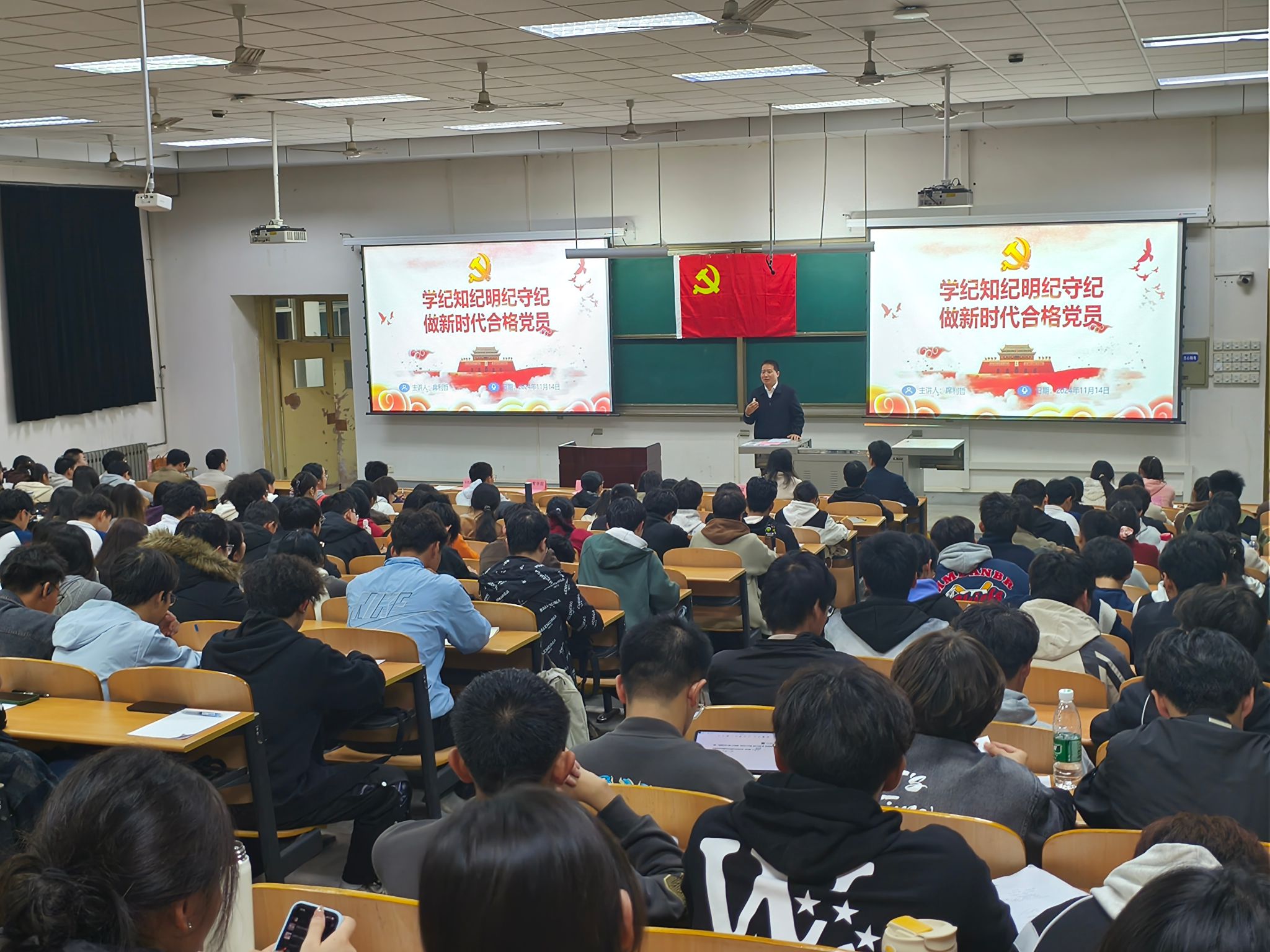 開班儀式后,理學(xué)院黨委書記席利哲作了培訓(xùn)班第一講。他以《學(xué)紀(jì)知紀(jì)明紀(jì)守紀(jì),做新時(shí)代合格黨員》為主題,通過與多名同學(xué)互動(dòng)提問的方式深入淺出地講解了新時(shí)代合格黨員的標(biāo)準(zhǔn)和內(nèi)涵,一要講政治、有信念,確保在鑄魂立根上合格;二要講規(guī)矩、有紀(jì)律,確保在遵規(guī)守紀(jì)上合格;三要講道德、有品行,確保在崇德修身上合格;四要講奉獻(xiàn)、有作為,確保在干事創(chuàng)業(yè)上合格。他指出,學(xué)紀(jì)、知紀(jì)、明紀(jì)、守紀(jì)是每個(gè)黨員的必修課,學(xué)紀(jì)是基礎(chǔ),知紀(jì)是前提,明紀(jì)是根本,守紀(jì)是關(guān)鍵,要深刻認(rèn)識(shí)黨的紀(jì)律在教育引導(dǎo)、警示預(yù)防、懲戒糾錯(cuò)方面的功能,自律和他律相結(jié)合的實(shí)質(zhì),以及加強(qiáng)黨的紀(jì)律建設(shè)的重要性。他為全體參訓(xùn)學(xué)員解讀了《中國(guó)共產(chǎn)黨紀(jì)律處分條例》的主要內(nèi)容和負(fù)面清單,以典型案例生動(dòng)詮釋了黨的紀(jì)律的嚴(yán)肅性和權(quán)威性。最后,他鼓勵(lì)大家努力學(xué)習(xí),爭(zhēng)取早日入黨,把遵規(guī)守紀(jì)內(nèi)化為思想和行動(dòng)自覺,敬畏法紀(jì),從小事做起,在日常堅(jiān)守,以新時(shí)代合格黨員的標(biāo)準(zhǔn)嚴(yán)格要求自己,跑好中國(guó)式現(xiàn)代化的接力棒,在民族復(fù)興的宏偉征程中寫就青春的華彩篇章。