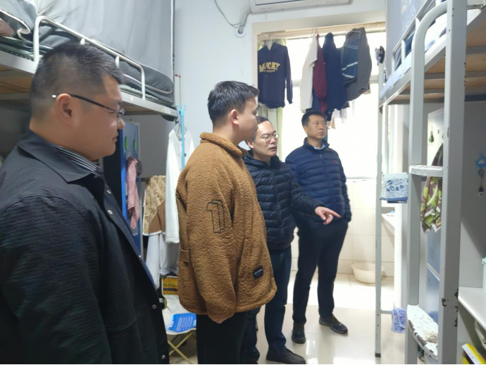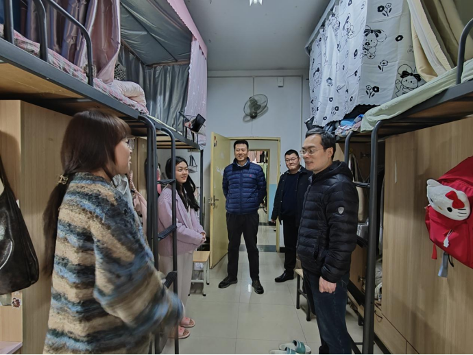 走訪過程中,張建高、陳武、邱嶺分別與同學(xué)們進(jìn)行親切交談。從住宿飲食、生活習(xí)慣、發(fā)展規(guī)劃等多方面深入了解學(xué)生情況。耐心傾聽同學(xué)們的心聲,及時為學(xué)生們答疑解惑,解決問題。同時,提醒同學(xué)們在日常生活中要注重勞逸結(jié)合,鼓勵同學(xué)們在宿舍要相互關(guān)心,相互幫助,共同營造一個和諧、溫馨的寢室氛圍。