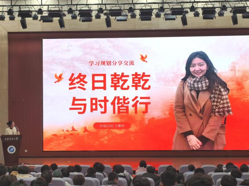 王雅婷同學以“終日乾乾,與時偕行”為題,圍繞合理規(guī)劃、成長建議和個人寄語三個方面,著重強調(diào)了學習過程中的“自知”、“自律”、“做自己”以及“勇于探索、嘗試和體驗”的重要性。她建議同學們在學習過程中要注意勞逸結(jié)合,合理安排時間,同時鼓勵大家要傾聽內(nèi)心的聲音,積極參與各類活動,做有意義的事情;要真誠地愛自己,勇敢地追逐個人夢想。