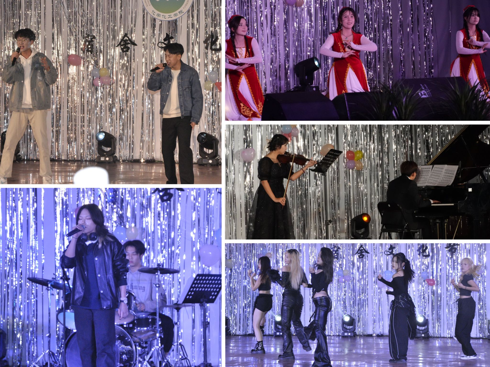 伴隨著動感歡快的街舞表演,晚會正式拉開帷幕。歌曲、舞蹈、話劇、T臺秀等形式多樣的表演為觀眾呈現(xiàn)了一場視聽盛宴。2024級輔導(dǎo)員王蓉的舞蹈《人世間》以優(yōu)美且富有深意的肢體語言,為觀眾演繹出平凡日子里的不凡情感,帶觀眾穿越時光的長河。歌曲《美人魚》用音符編織出了美人魚在深海中搖曳身姿,在愛與夢想間徘徊的故事?!秅olden hour》將悠揚的鋼琴音符與靈動的小提琴相結(jié)合,帶領(lǐng)觀眾踏入一段被陽光與詩意鋪滿的音樂旅程。舞蹈《寄明月》將古風(fēng)的典雅韻味與現(xiàn)代舞蹈的動感活力巧妙融合,表演者用靈動的身姿訴說著古老的故事。歌曲《可惜沒如果》唱出了人們在感情面前的怯懦與后悔。本次活動還邀請了與同學(xué)們朝夕相處的宿舍管理員代表登臺表演,他們表演的拐杖舞《叫一聲二奶奶》中將拐杖化為靈動的藝術(shù)工具,使表演幽默詼諧又韻味十足。話劇《旅程——斷章取“誼”》的表演者們用他們精湛的演技,為觀眾展現(xiàn)友誼在時光長河中經(jīng)歷的波折起伏。充滿異域風(fēng)情的新疆舞表演讓觀眾領(lǐng)略到新疆這片土地獨特的藝術(shù)瑰寶,感受來自遠方的熱情與活力。T臺秀以《if you feel my love》為靈感源泉,帶觀眾穿越古今,跨越文化的界限,在那悠揚且富有韻味的旋律中,模特們用他們的步伐、身姿與服飾,展現(xiàn)出傳統(tǒng)與現(xiàn)代的交融,東方與西方的碰撞。歌曲《找自己》用觸動靈魂的歌聲帶領(lǐng)觀眾探尋那些被遺忘的夢想角落,重拾那份純粹與灑脫。舞蹈《meow》點燃了現(xiàn)場的熱烈氛圍,為觀眾演繹出獨特的喵趣與活力?!度f蝶振翅》的旋律響起,仿佛有成千上萬只蝴蝶在花叢中翩翩起舞。歌曲《凄美地》的表演者用深情的嗓音唱出了對過去美好時光的懷念,以及面對失去時的無奈與悲傷。最后,在抽獎環(huán)節(jié)老師與同學(xué)們共同見證了幸運降臨的瞬間。主席團成員及老師們齊聚舞臺,與觀眾共同感受這份真摯的情感交融與集體的溫暖力量,用歌聲詮釋了《相親相愛》。