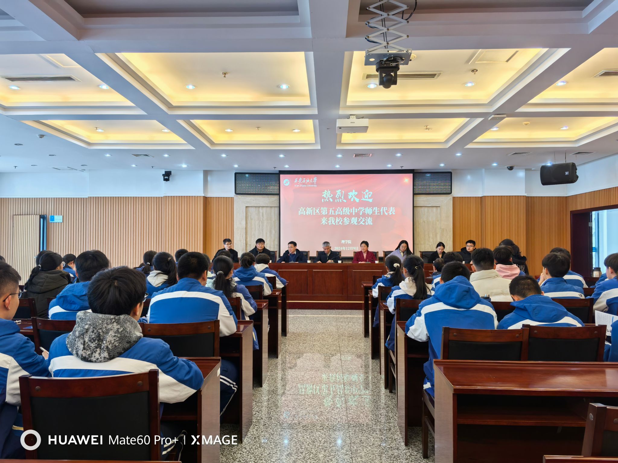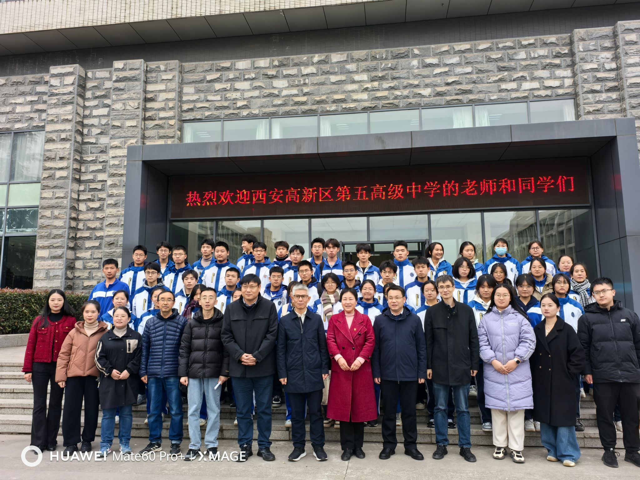 2024年12月9日下午,我校優(yōu)秀生源基地——西安高新區(qū)第五高級中學受邀來我校開展研學交流活動,該校副校長白海燕帶領師生代表50余人參加活動。理學院招生宣傳工作組代表學校接待五高師生并在鄠邑校區(qū)第一會議室舉行歡迎儀式,理學院副院長陳國祥代表學校及學院對五高師生代表表示熱烈歡迎,并介紹了研學活動行程。我校教務處處長時保宏、材料科學與工程學院黨委副書記兼教務處招生辦公室主任屈敏佳、理學院黨委副書記楊富民及理學院教師代表出席活動。