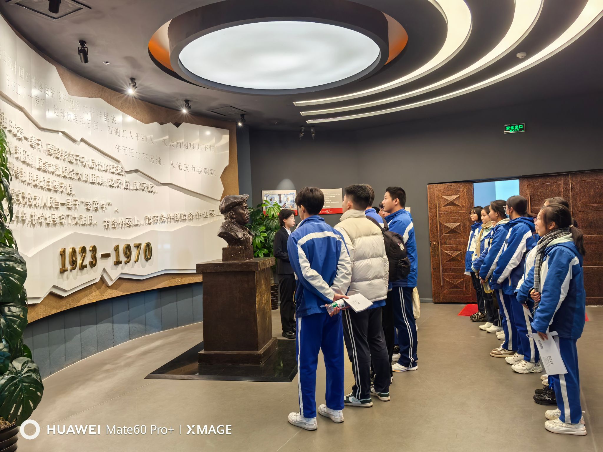 研學活動首站來到鐵人紀念館和校史館,在講解員們的引領下,五高師生代表分為兩組進行了參觀。在鐵人紀念館,通過講解員細致的講解,結合一幅幅珍貴的照片、一件件實物展品,五高師生深切感受到鐵人47年的不凡人生歷程,深刻領悟了鐵人精神的內(nèi)涵。在校史館,跟隨講解員的步伐,五高師生認真聆聽了我校的建設發(fā)展歷程,透過一個個展板,一件件歷史實物,大家學習了先輩們篳路藍縷艱苦辦學的奮斗精神、專家學者潛心育人的優(yōu)秀事跡和畢業(yè)生扎根祖國大地回饋社會的愛國情懷,深切感受到我校的校園文化和學習氛圍,也激發(fā)起內(nèi)心對大學生活的向往和憧憬。