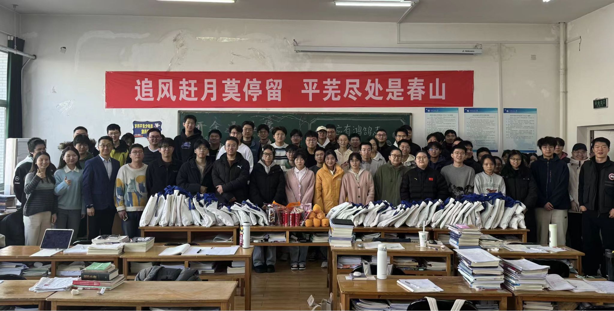 隨后,老師們?yōu)榭佳袑W子送上了一份份精心準備的“考研加油包”。禮包中包含了金榜題名文具袋、定制可樂、溫暖隨行的暖寶和眼貼,還有老師們親手寫的祝福賀卡。這份禮物飽含著學院對學子的深切期許與鼓勵,期望他們能以昂揚之姿、篤定之心決戰(zhàn)考研。