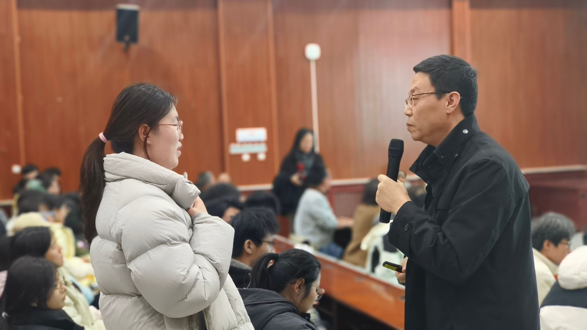 四位老師從多個角度介紹了各專業(yè)的獨(dú)特魅力和廣闊前景,結(jié)合當(dāng)前專業(yè)就業(yè)崗位信息和碩士、博士階段學(xué)習(xí)內(nèi)容,鼓勵2023級計(jì)算機(jī)類的同學(xué)們能夠根據(jù)自身興趣特點(diǎn),找到最適合自己的發(fā)展道路。四位老師并就現(xiàn)場同學(xué)提出的圍繞專業(yè)課程學(xué)習(xí)、就業(yè)前景等問題進(jìn)行了詳細(xì)解答,幫助學(xué)生全面了解各專業(yè)的培養(yǎng)方案、人才培養(yǎng)目標(biāo)、職業(yè)發(fā)展方向和優(yōu)秀畢業(yè)生風(fēng)采。
