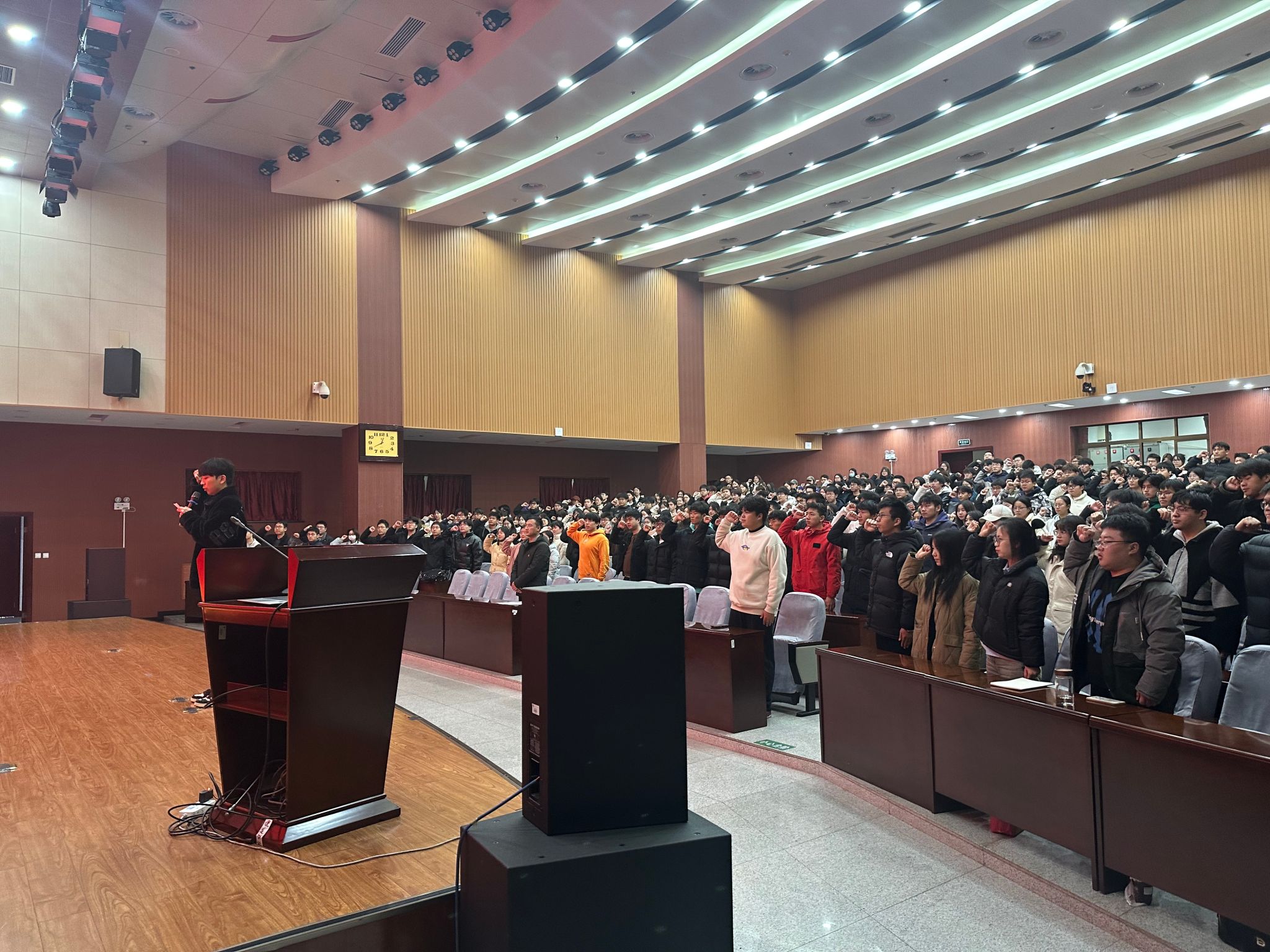 為深入落實(shí)貫徹黨的二十大精神以及習(xí)近平新時(shí)代中國特色社會主義思想,貫徹落實(shí)習(xí)近平總書記關(guān)于新時(shí)代新征程加強(qiáng)和改進(jìn)團(tuán)員隊(duì)伍建設(shè)工作意見的重要指示精神,激發(fā)我校廣大青年學(xué)生的愛黨、愛國熱情,12月18日中午,校團(tuán)委于鄠邑校區(qū)弘石報(bào)告廳開展2024年下半年新發(fā)展團(tuán)員入團(tuán)儀式。校團(tuán)委副書記王軍策,團(tuán)委組織部工作人員及338名新發(fā)展團(tuán)員代表參加本次儀式,儀式由王澤文主持。