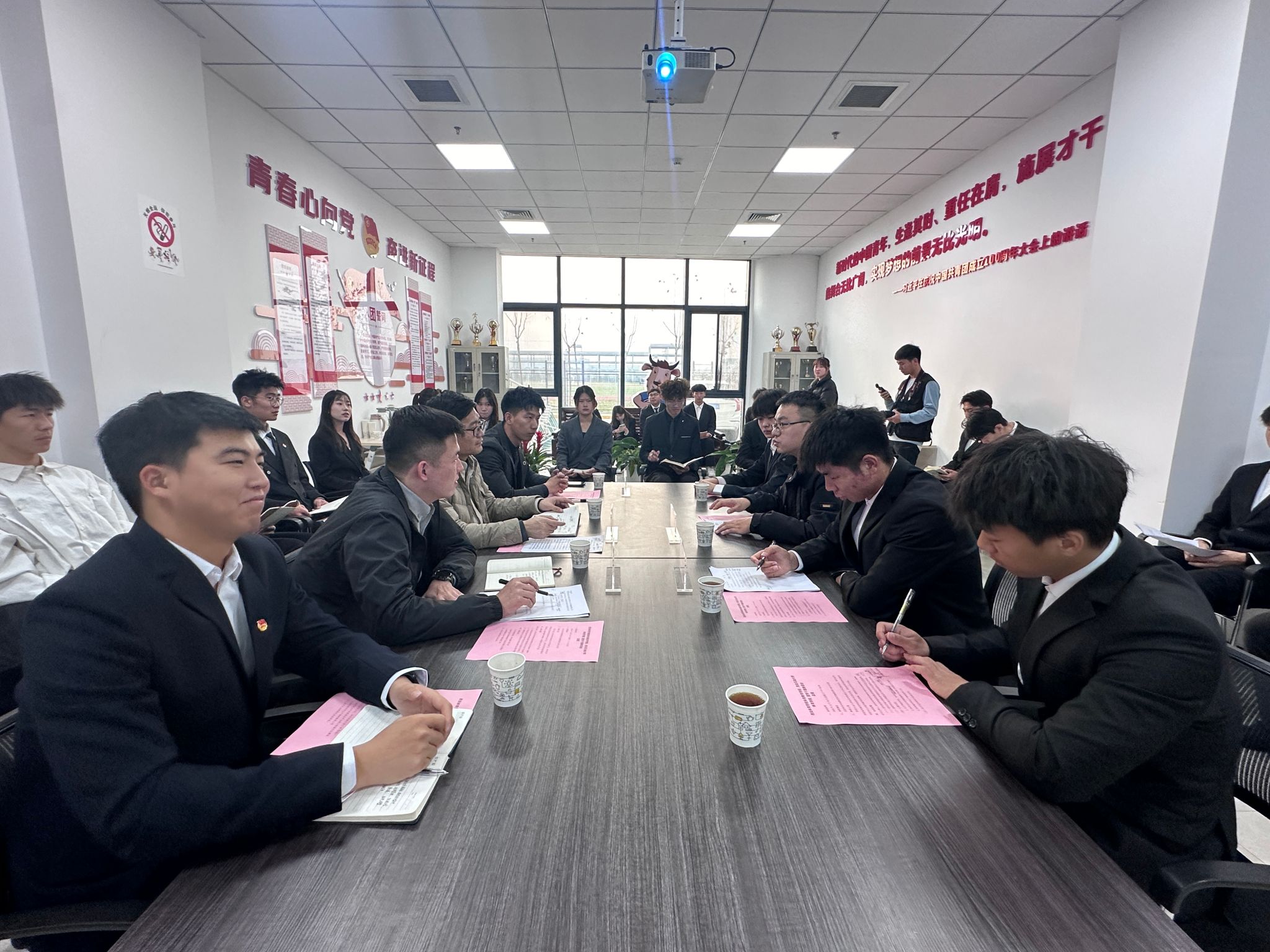 隨后,在交流環(huán)節(jié)中,兩個學院學生會主席團負責同學就各自學院的學生會組織進行了介紹,并就如何立足于學院、學校實際情況開展學生會工作進行了經驗分享。此外,雙方學生會成員就品牌形象建設、學生會組織建設、新媒體平臺管理維護、部門職能任務分工、活動創(chuàng)新與實施等方面進行了交流討論,各自詳盡介紹了學生會的整體架構和運行模式,并從職能機制到組織運轉等方面對學生會工作所面臨的機遇和挑戰(zhàn)進行了全方位的交流,闡述了各自組織未來發(fā)展的系列構想。最后,宗月民對本次交流活動進行了總結講話,希望同學們能夠珍惜這次交流學習的機會,不斷提高自身素質和能力水平,為團學工作做出更多的貢獻。