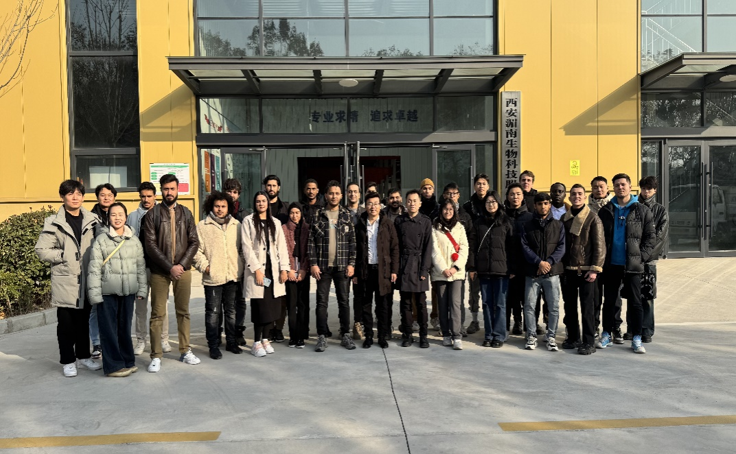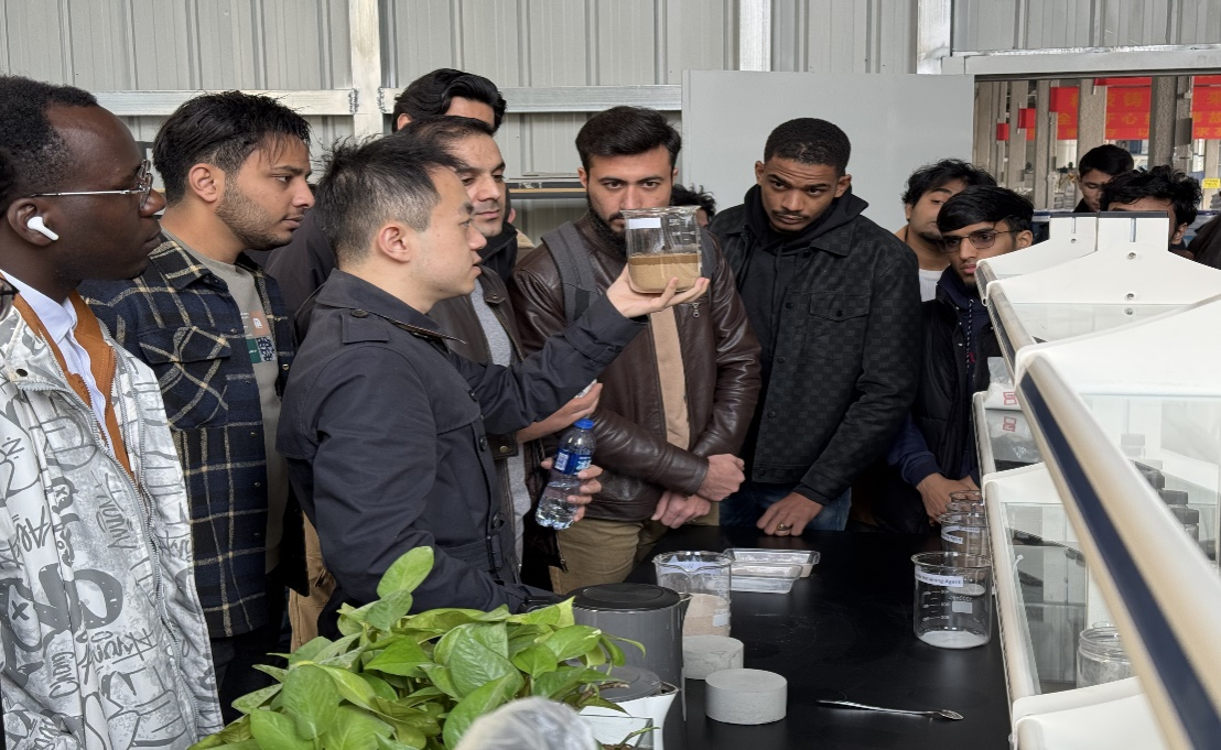 活動(dòng)開始,留學(xué)生們來到西安湄南生物科技股份有限公司研發(fā)中心,認(rèn)真觀察防沙治沙“黑科技”的合成,并與技術(shù)人員交流,詢問生產(chǎn)流程和技術(shù)細(xì)節(jié),感受中國(guó)企業(yè)為全球荒漠化治理的探索與創(chuàng)新。