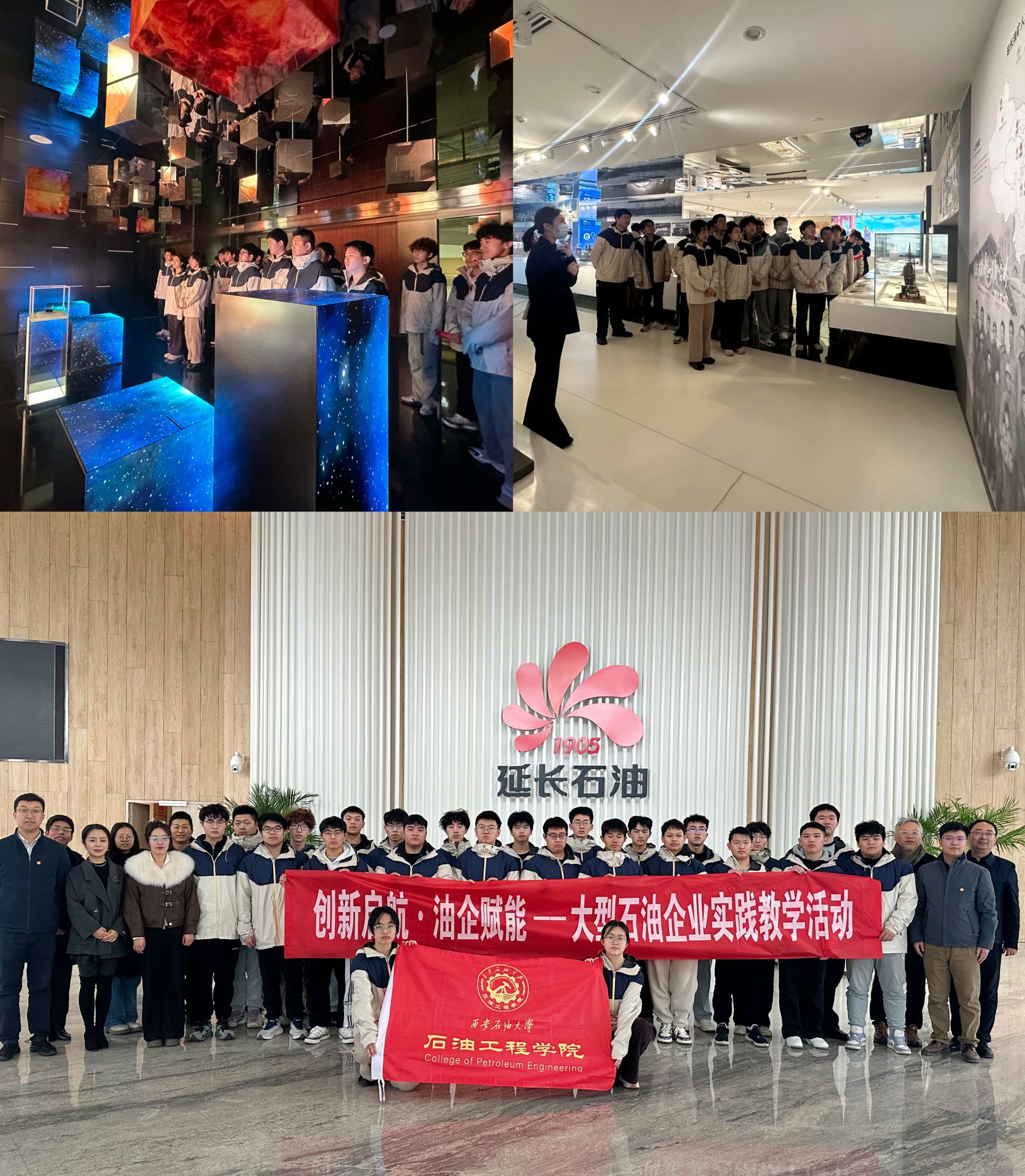 為進一步落實拔尖創(chuàng)新人才培養(yǎng)目標,踐行“小規(guī)模、高起點、有特色”的本研貫通人才培養(yǎng)方式,深化產(chǎn)教融合、校企聯(lián)合培養(yǎng)模式,石油工程學院黨委書記司馬文龍、院長黃海、黨委副書記張浩然、副院長王琛一行于2月18日至22日組織帶領(lǐng)首屆創(chuàng)新班同學分別走進中國石油集團測井有限公司、中國石油長慶油田分公司、延長石油(集團)有限責任公司等大型石油企業(yè)總部,通過實地觀摩企業(yè)總部運行模式、了解企業(yè)歷史文化、油氣開發(fā)科技成果及行業(yè)發(fā)展趨勢等,助力學生掌握石油行業(yè)科技前沿動態(tài),鍛造未來能源管理者的大視野,為專業(yè)學習及職業(yè)發(fā)展注入新動能。