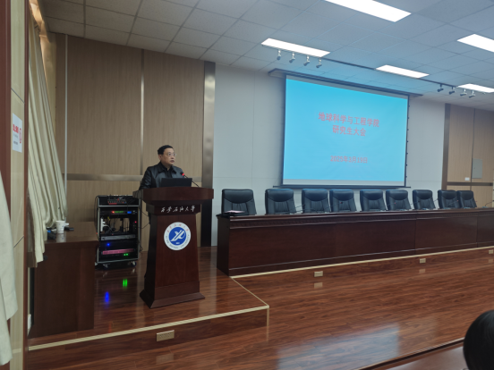 副院長(zhǎng)黨偉指出,全面提升研究生培養(yǎng)質(zhì)量是學(xué)院的中心任務(wù)之一。對(duì)此,他針對(duì)全體研究生提出幾點(diǎn)要求,一是要端正學(xué)風(fēng)作風(fēng),遵守各項(xiàng)規(guī)章制度,在科研學(xué)術(shù)上追趕超越;二是要樹立正確就業(yè)觀念,要認(rèn)真考慮個(gè)人情況,開拓就業(yè)思路,把握就業(yè)機(jī)會(huì);三是要時(shí)刻注意人身安全,在保障自身安全的前提下開展工作;四是鼓勵(lì)研究生積極報(bào)考博士,將攻讀博士研究生作為個(gè)人學(xué)術(shù)與職業(yè)生涯的重要選擇,為未來發(fā)展打下堅(jiān)實(shí)基礎(chǔ)。