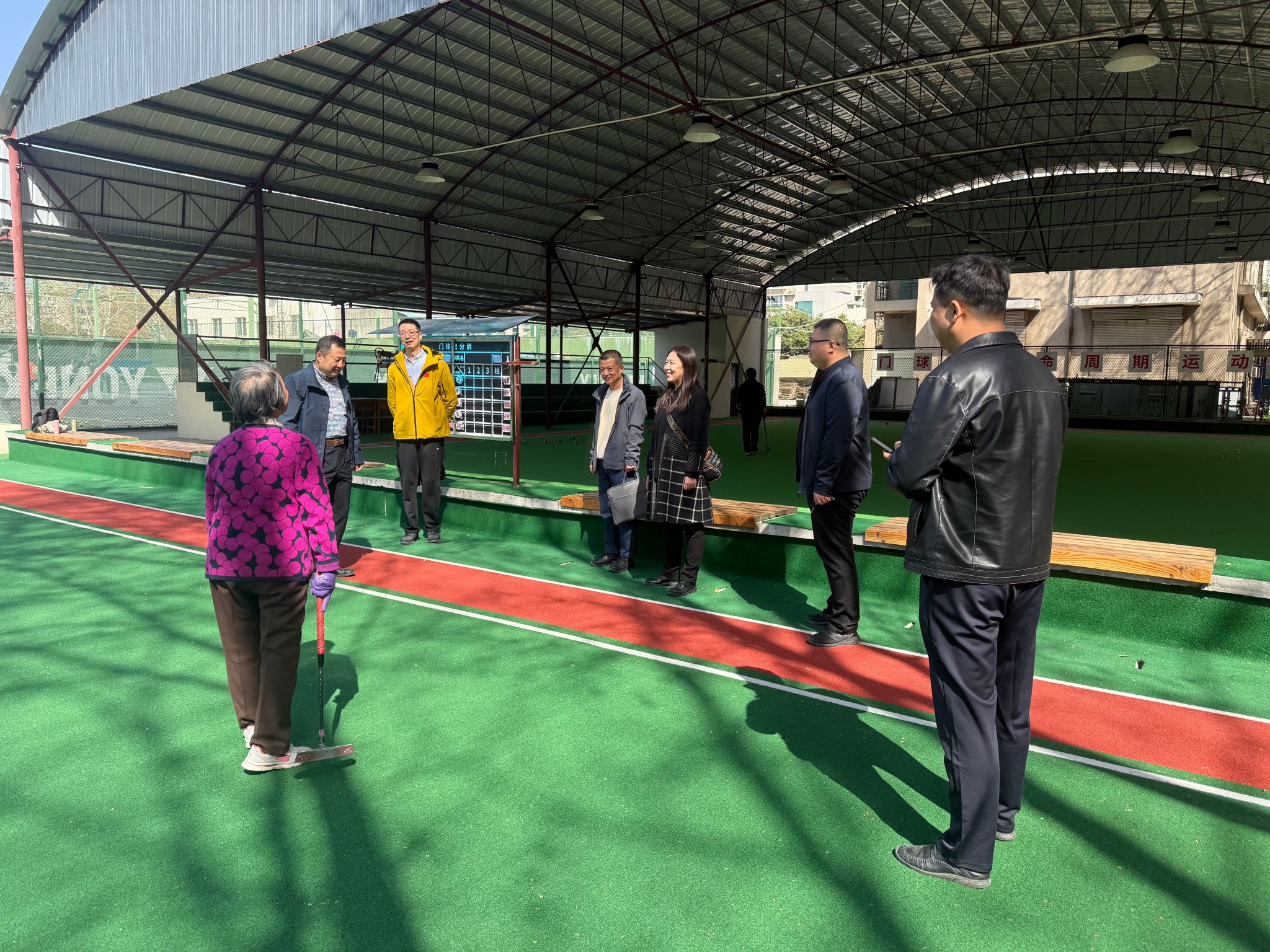 會后,在我校工作人員的陪同下,朱艦處長一行參觀了我校的老年活動室、閱覽室、乒乓球室以及門球場等老年活動場地。完善的設(shè)施、貼心的布局,給來賓們留下了深刻印象。