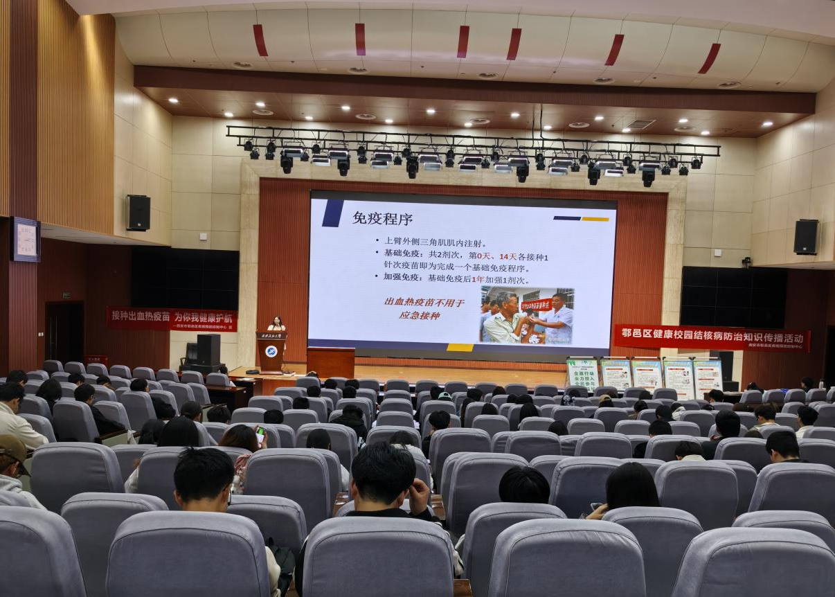 講座中,各位專家、老師結(jié)合自身多年工作經(jīng)歷,詳細(xì)介紹了什么是肺結(jié)核以及肺結(jié)核的潛伏期表現(xiàn)、如何預(yù)防和治療肺結(jié)核病。鄠邑區(qū)疾控中心鄭美辰老師給大家講了關(guān)于流行性出血熱病原學(xué)特征、傳播途徑、典型癥狀及防治要點(diǎn),詳細(xì)介紹了疫苗接種、個(gè)人防護(hù)、環(huán)境衛(wèi)生整治等防控措施。專家們的講座充分考慮大學(xué)生實(shí)際,語言淺顯易懂,大家受益匪淺。現(xiàn)場還通過互動(dòng)問答等形式增加了講座的趣味性,幫助師生及居民提升防治結(jié)核病、流行性出血熱的意識,取得了良好的教育宣傳效果。