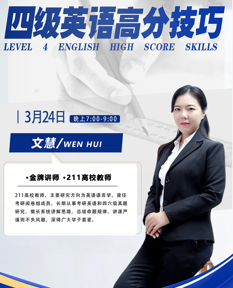 3月24日,計算機學(xué)院在鄠邑校區(qū)博覽樓B101室舉辦了全國大學(xué)英語四級考試輔導(dǎo)講座。此次講座邀請從事四級真題研究的資深老師文慧主講,學(xué)院近200名學(xué)生參加了講座。