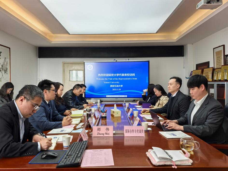 2025年3月28日,韓國(guó)延世大學(xué)國(guó)際學(xué)研究生院全球精英課程項(xiàng)目主任金東燦教授、招生負(fù)責(zé)主任杜健教授和項(xiàng)目講師占茵一行三人來(lái)校訪問(wèn)。雙方在東方石油樓801會(huì)議室進(jìn)行了合作座談。區(qū)域國(guó)別研究院執(zhí)行院長(zhǎng)劉輝、體育學(xué)院院長(zhǎng)李壽邦、外國(guó)語(yǔ)學(xué)院王文峰副教授及國(guó)際合作與交流處國(guó)際項(xiàng)目辦公室等有關(guān)負(fù)責(zé)人參加座談會(huì),會(huì)議由國(guó)際合作與交流處副處長(zhǎng)、國(guó)際教育學(xué)院副院長(zhǎng)顏庭星主持。