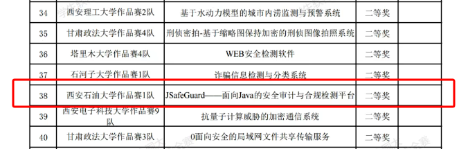 本次參賽團(tuán)隊(duì)由五名本科生組成,作品名稱為《JSafeGuard —— 面向Java的安全審計(jì)與合規(guī)檢測平臺》,通過構(gòu)建分層架構(gòu)設(shè)計(jì)、漏洞復(fù)現(xiàn)技術(shù)、安全代碼生成技術(shù)以及交互式用戶界面,實(shí)現(xiàn)了Java漏洞的分類展示與詳細(xì)演示、安全修復(fù)指導(dǎo)、審計(jì)要點(diǎn)明確以及安全編碼規(guī)范推廣等功能,為安全服務(wù)人員、研發(fā)人員和安全研究人員提供了一個(gè)高效、實(shí)用的Java安全研究與培訓(xùn)平臺。攻防賽則是由四名本科生組成,團(tuán)隊(duì)結(jié)合先進(jìn)的網(wǎng)絡(luò)安全技術(shù),通過相應(yīng)安全工具和算法,成功模擬并防御了一系列復(fù)雜的攻擊行為,并在規(guī)定時(shí)間內(nèi)完成任務(wù)目標(biāo)。