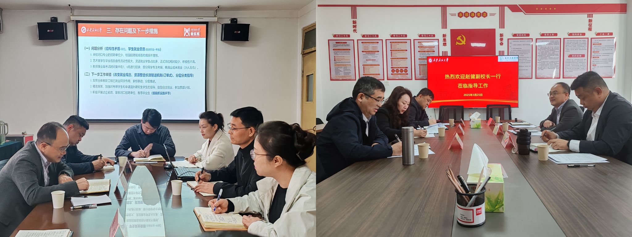 為深入貫徹落實教育部、省教育廳和學(xué)校黨委關(guān)于做好畢業(yè)生就業(yè)工作的指示要求,全力推進2025屆畢業(yè)生就業(yè)進程,3月20—26日,校黨委委員、副校長趙健深入各院(系)走訪調(diào)研2025屆畢業(yè)生就業(yè)考研工作。學(xué)生工作部(處)(就業(yè)創(chuàng)業(yè)指導(dǎo)中心)、研究生工作部相關(guān)負責(zé)同志陪同。