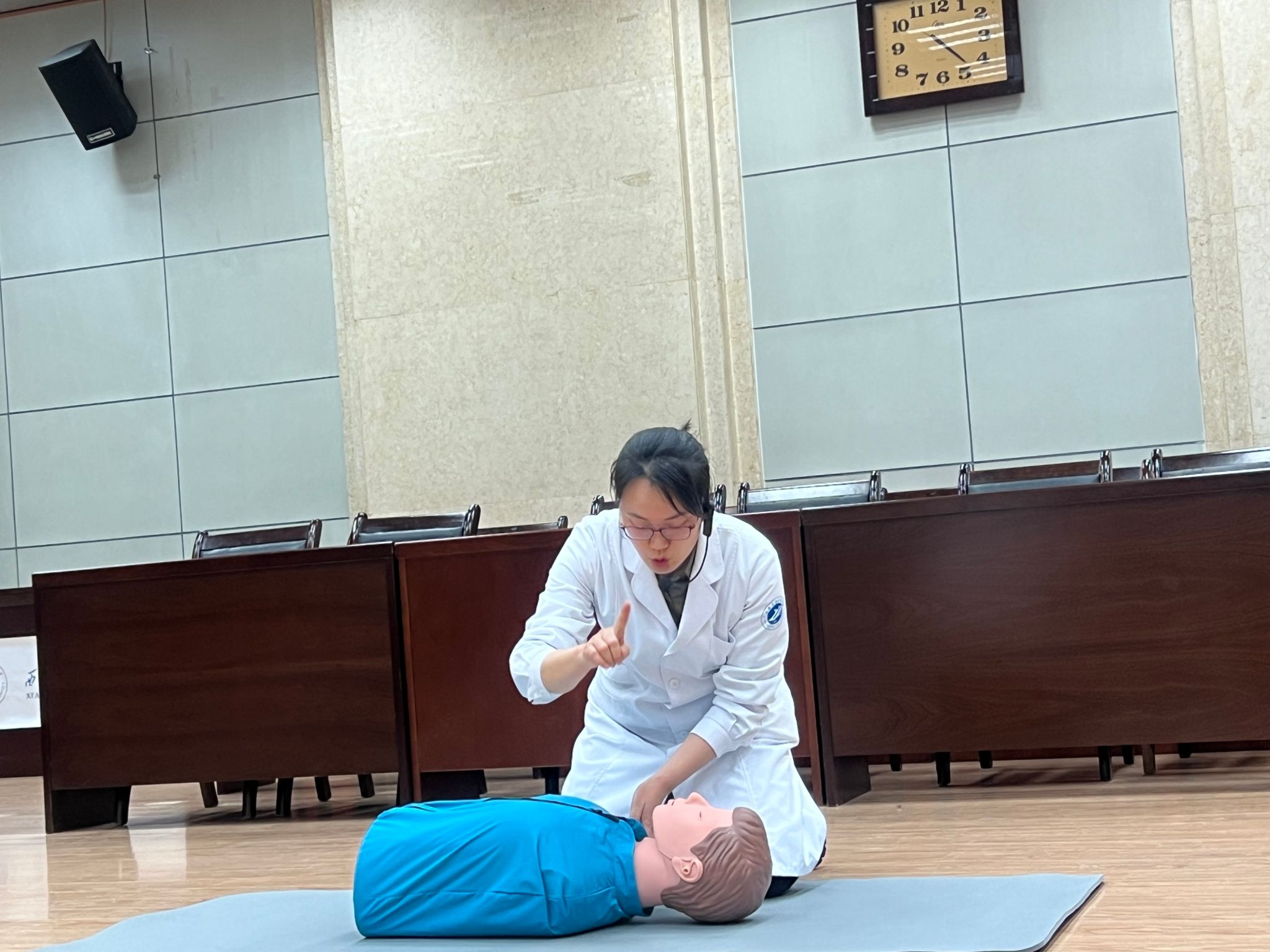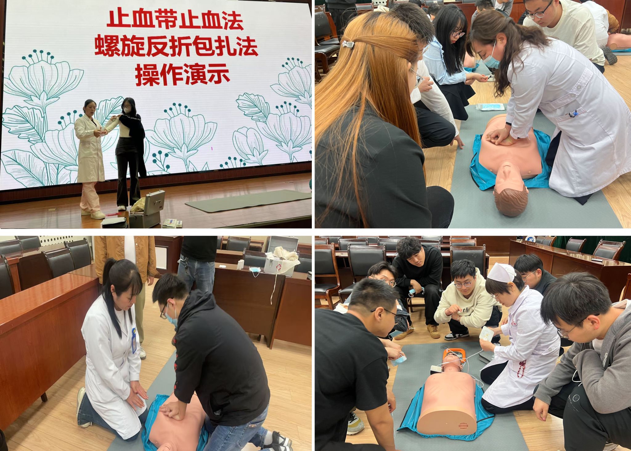 培訓現(xiàn)場,校醫(yī)院工作人員、陜西省紅十字救護師資宋彥霞、解姣主講,內(nèi)容主要涵蓋:心肺復蘇技術(shù)(CPR)和自動體外除顫儀(AED)的使用;氣道異物梗阻的應急處理(海姆立克急救法);外傷止血與包扎技巧;燒燙傷的科學處理;溺水現(xiàn)場的應急救護;講師們通過生動的案例分析和分步演示,詳細講解了各類突發(fā)情況的處置要點,并強調(diào)“黃金救援時間”的重要性。
