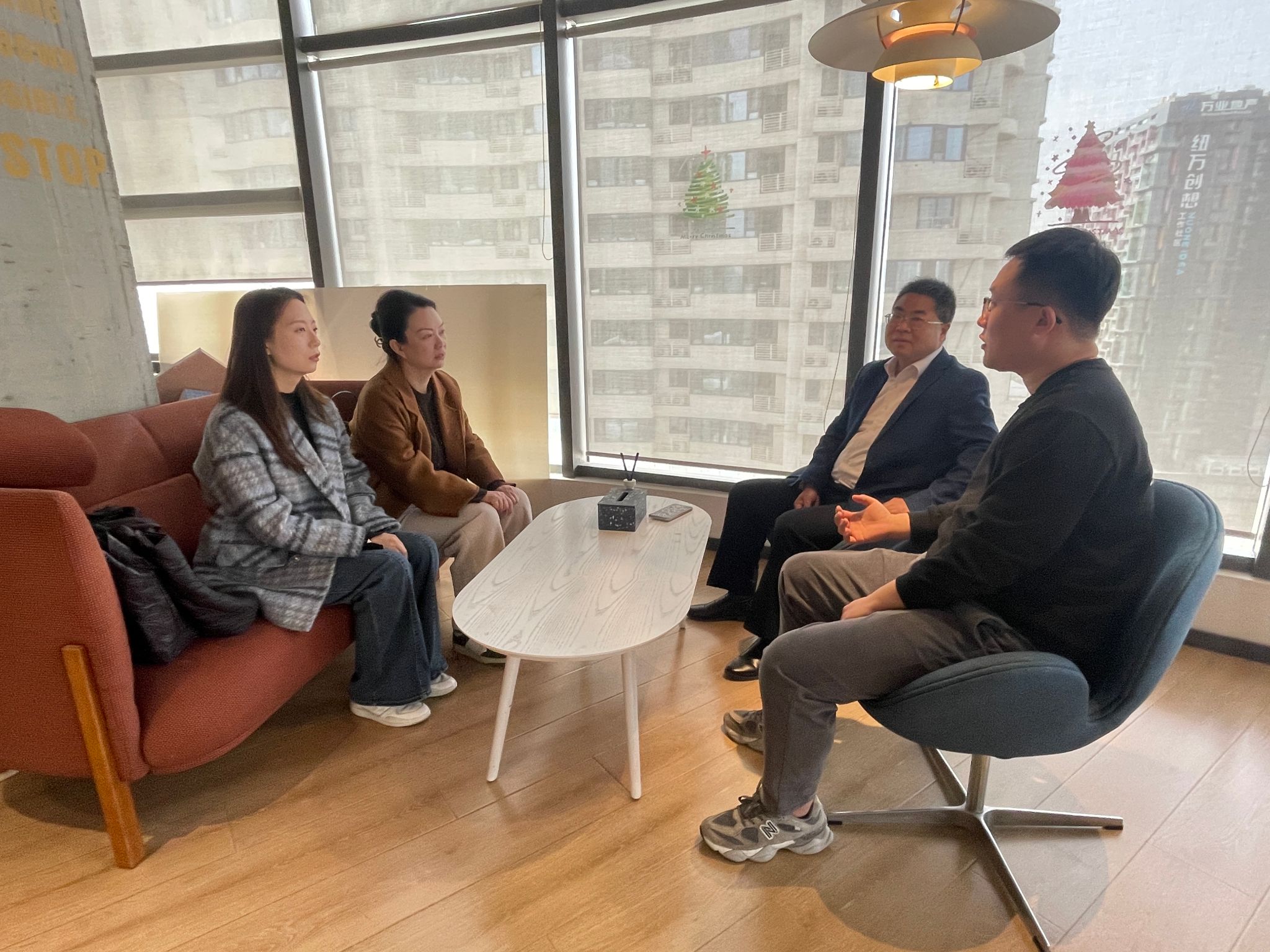 儀式結束后,余小勇一行人參觀了AF國際藝術中心的教學區(qū)、作品展示廳及辦公環(huán)境,深入了解企業(yè)運營模式與實習場景?。盛丹與企業(yè)代表圍繞學生留學申請中的常見問題展開討論,計劃未來將聯(lián)合協(xié)作,一同優(yōu)化實習指導方案,為學生提供“一站式”留學與就業(yè)服務?。
