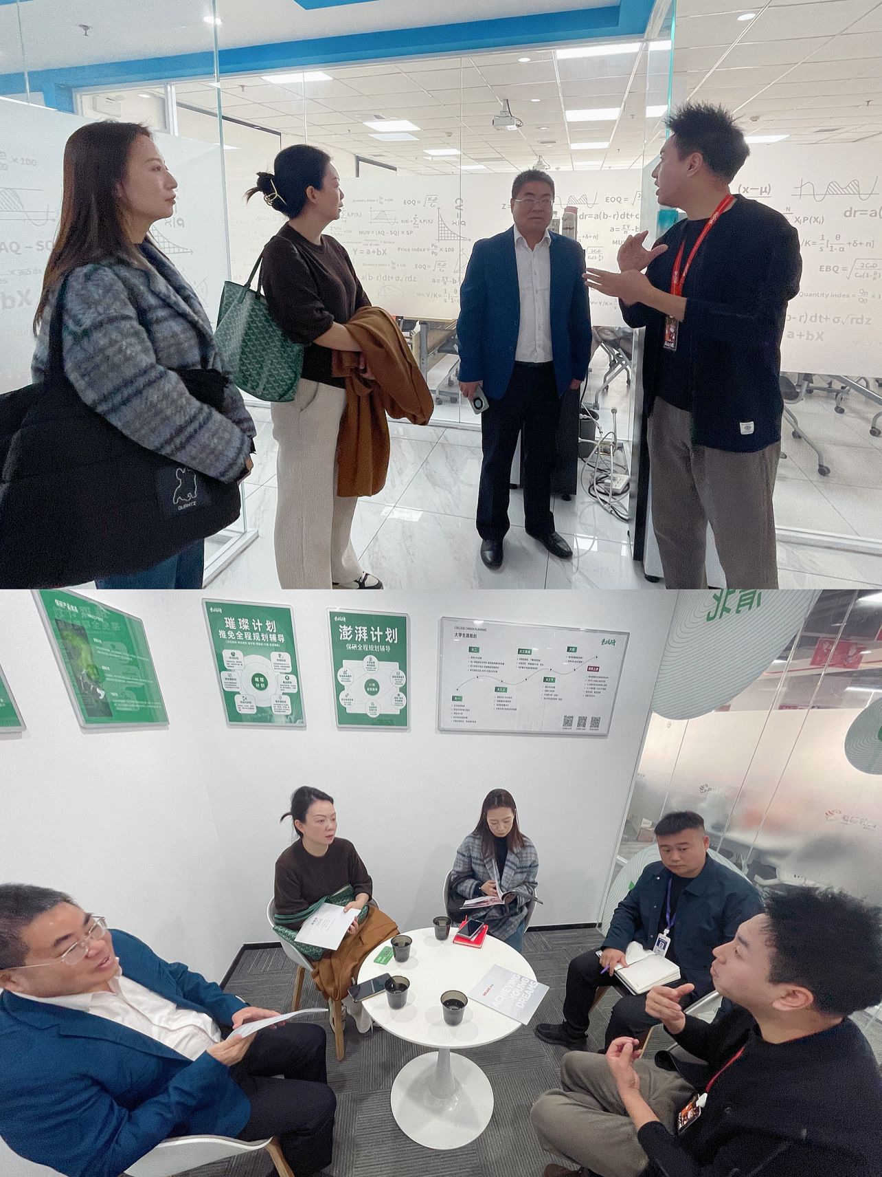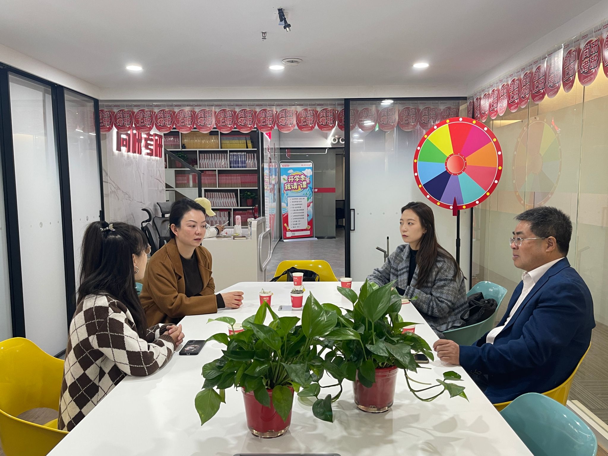 隨后,學(xué)院一行來到尚研考研,雙方圍繞四六級(jí)成績(jī)提升、考研輔導(dǎo)、考公能力培養(yǎng)等議題展開深入探討。盛丹闡述了人文學(xué)院學(xué)生在考研、升學(xué)、考公等領(lǐng)域的多元需求。尚研考研負(fù)責(zé)人劉老師詳細(xì)介紹了機(jī)構(gòu)的特色課程體系與服務(wù)優(yōu)勢(shì),提出了“四六級(jí)專項(xiàng)提升+考研全流程規(guī)劃”的初步合作方案,并表示將優(yōu)先保障人文學(xué)院學(xué)生的公益課程資源。
