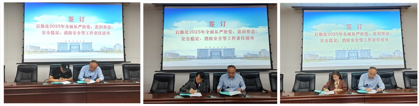 會上,后勤處領導班子逐一與所分管的各中心(辦)負責人簽訂了《后勤處2025年全面從嚴治黨、意識形態(tài)、安全穩(wěn)定、消防安全等工作責任清單》,要求緊密結(jié)合全面從嚴治黨工作、后勤管理集中整治工作,進行壓力逐級傳導,層層夯實責任,確保責任到人。