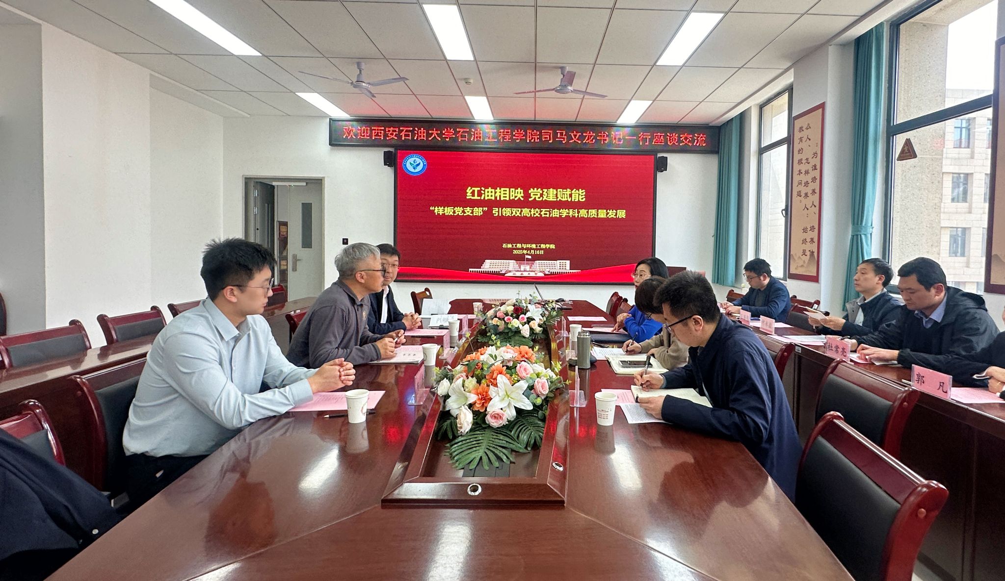 418日上午,司馬文龍一行在隴東學(xué)院石油化工學(xué)院黨委書記武蕓、院長李治軍的陪同下,參觀了隴東學(xué)院石油工程系實訓(xùn)中心,實地考察了鉆井模擬平臺等特色實踐教學(xué)設(shè)施,詳細了解學(xué)院產(chǎn)教融合育人模式。隨后,雙方在石油化工學(xué)院黨員活動室舉行黨建共建座談會。會上,武蕓從“南梁精神育匠才”的辦學(xué)理念出發(fā),系統(tǒng)介紹了學(xué)院組織育人特色、創(chuàng)新制度引領(lǐng)、黨建成果產(chǎn)出。她強調(diào),隴東學(xué)院與西安石油大學(xué)同處能源基地建設(shè)前沿,期待通過組織聯(lián)建、課題聯(lián)研、人才聯(lián)育深化戰(zhàn)略協(xié)同。司馬文龍指出,兩校在踐行“能源飯碗端在自己手里”使命中肩負共同責(zé)任,建議圍繞“黨建引領(lǐng)學(xué)科發(fā)展、黨建引領(lǐng)有組織科研”,形成學(xué)院黨建工作新特色。會上,司馬文龍還詳細介紹了學(xué)院研究生專業(yè)培養(yǎng)方向和招生政策,聽取了隴東學(xué)院石油化工學(xué)院對我院研究生招生工作的建議,雙方表示要進一步強化優(yōu)質(zhì)研究生生源供給。