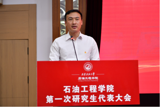 石油工程學(xué)院黨委書(shū)記司馬文龍代表學(xué)院黨委向大會(huì)的勝利召開(kāi)表示熱烈祝賀,向全體與會(huì)代表致以親切問(wèn)候。他指出,本次大會(huì)是以習(xí)近平新時(shí)代中國(guó)特色社會(huì)主義思想為指導(dǎo),深入學(xué)習(xí)貫徹黨的二十屆三中全會(huì)和全國(guó)教育大會(huì)精神,深刻領(lǐng)會(huì)習(xí)近平總書(shū)記關(guān)于青年工作的重要思想,認(rèn)真學(xué)習(xí)學(xué)校第三次黨代會(huì)精神的一次重要的大會(huì)。大會(huì)的主要任務(wù)是討論今后一個(gè)時(shí)期研究生會(huì)工作的目標(biāo)方向,更好地完善研究生培養(yǎng)體系,搭建研究生交流溝通平臺(tái),促進(jìn)研究生成長(zhǎng)成才,團(tuán)結(jié)帶領(lǐng)全院研究生為建成特色鮮明的高水平教學(xué)研究型大學(xué)積極作為,為實(shí)現(xiàn)中華民族偉大復(fù)興中國(guó)夢(mèng)貢獻(xiàn)青春力量。他強(qiáng)調(diào),與會(huì)代表要以嚴(yán)謹(jǐn)求實(shí)的態(tài)度,認(rèn)真履行職責(zé),圓滿(mǎn)完成大會(huì)的各項(xiàng)任務(wù),把本次大會(huì)開(kāi)成民主、和諧、團(tuán)結(jié)、奮進(jìn)的大會(huì)。