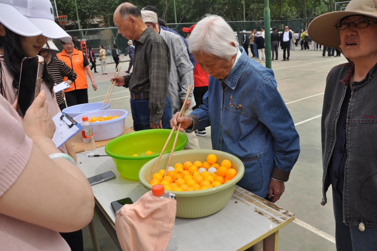 為關(guān)愛(ài)高齡老同志,運(yùn)動(dòng)會(huì)特別為 80 歲以上的老同志增設(shè)筷子夾球和擲乒乓球項(xiàng)目。這些項(xiàng)目既充滿趣味,又能鍛煉手部精細(xì)動(dòng)作和身體協(xié)調(diào)性。老同志們興致勃勃地參與其中,臉上洋溢著燦爛的笑容,現(xiàn)場(chǎng)洋溢著歡樂(lè)和諧的氛圍。