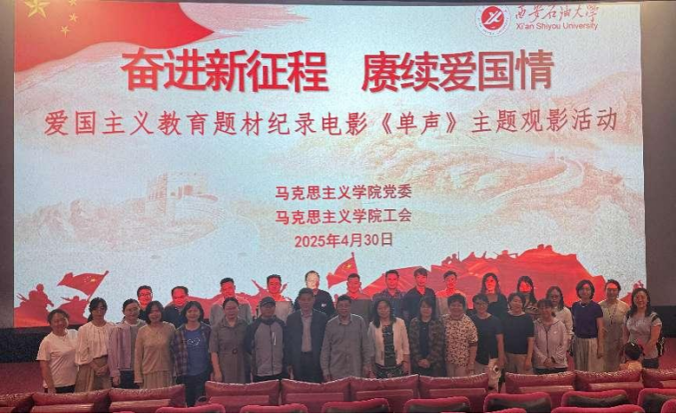 為深入學(xué)習(xí)貫徹黨的二十大精神,弘揚(yáng)愛國(guó)主義精神,增強(qiáng)教職工的民族自豪感與責(zé)任感,4月30日下午,馬克思主義學(xué)院黨委、工會(huì)聯(lián)合組織學(xué)院教職工40余人觀看了愛國(guó)主義題材紀(jì)錄電影《單聲》。本次主題活動(dòng)旨在通過(guò)生動(dòng)的影像教育引導(dǎo)思政課教師堅(jiān)定理想信念,強(qiáng)化使命擔(dān)當(dāng),將愛國(guó)熱情轉(zhuǎn)化為立德樹人的實(shí)際行動(dòng)。