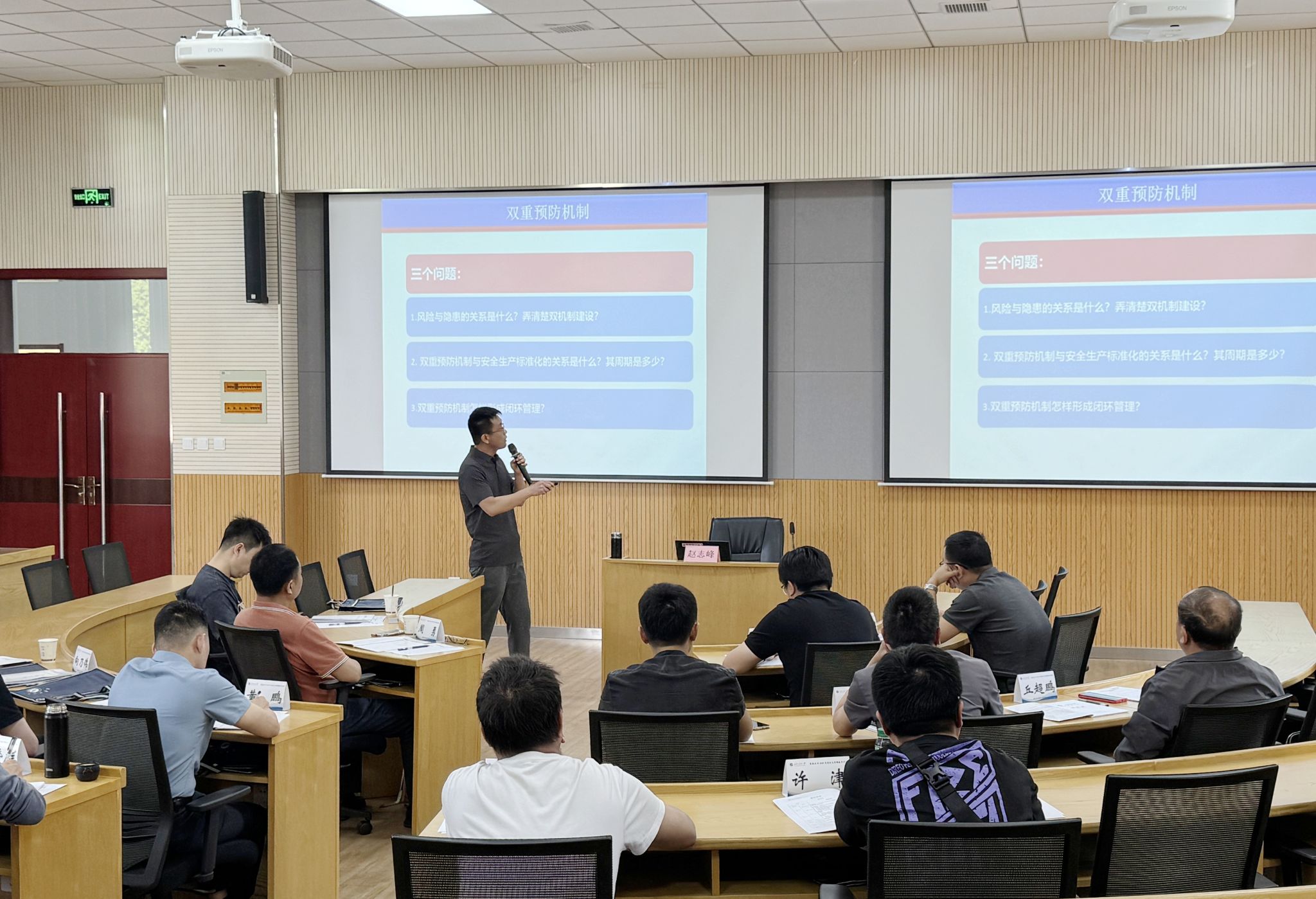 開班儀式結(jié)束后,我校趙志峰副教授做了題為《安全風(fēng)險(xiǎn)分級(jí)管控與隱患排查治理雙重預(yù)防機(jī)制》的專題講座。