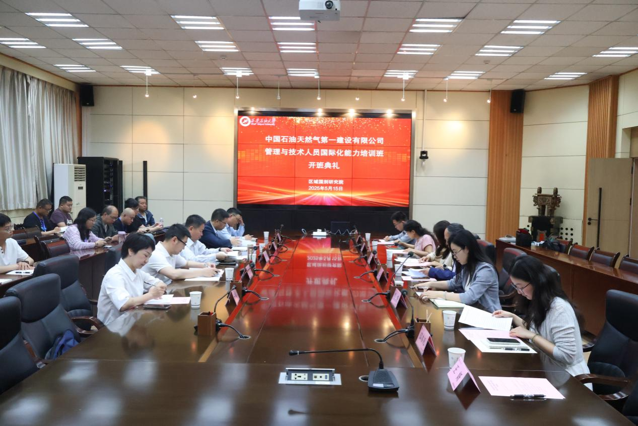 5月15日上午,區(qū)域國別研究院在雁塔校區(qū)會(huì)議中心第二會(huì)議室舉行了中國石油天然氣第一建設(shè)有限公司管理與技術(shù)人員國際化能力培訓(xùn)班開班儀式。中國石油天然氣第一建設(shè)有限公司總經(jīng)理助理兼國際事業(yè)部經(jīng)理張俊生、第四工程分公司黨工委書記楊東峰、第二工程分公司總工程師顧長(zhǎng)虹、區(qū)域國別研究院執(zhí)行院長(zhǎng)劉輝、培訓(xùn)班部分任課教師和全體學(xué)員參加了開班儀式。開班儀式由區(qū)域國別研究院辦公室副主任陶李主持。