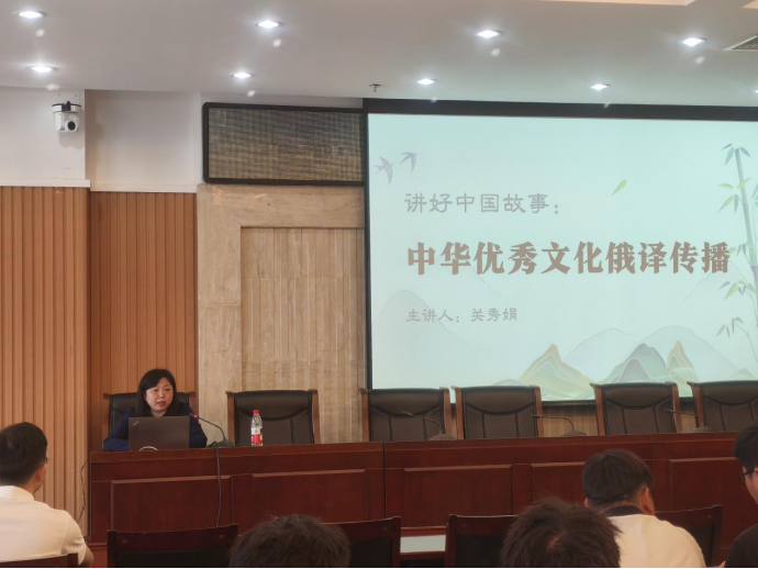 講座過(guò)程中,關(guān)秀娟教授結(jié)合自己豐富的學(xué)術(shù)研究和實(shí)踐經(jīng)驗(yàn),引用大量生動(dòng)的案例,深入淺出地講解了中華優(yōu)秀傳統(tǒng)文化俄譯傳播的要點(diǎn)和方法。她與在場(chǎng)師生積極互動(dòng),耐心解答大家提出的問(wèn)題,現(xiàn)場(chǎng)氣氛活躍,學(xué)術(shù)氛圍濃厚。最后,孫婷副教授對(duì)講座進(jìn)行了總結(jié),她表示,關(guān)秀娟教授的講座內(nèi)容豐富、觀點(diǎn)深刻,為外國(guó)語(yǔ)學(xué)院師生在中華優(yōu)秀傳統(tǒng)文化俄譯傳播方面提供了新的思路和方法。希望同學(xué)們能夠牢記外語(yǔ)學(xué)習(xí)者的使命與擔(dān)當(dāng),努力提升專(zhuān)業(yè)素養(yǎng),為推動(dòng)中華文化走向世界貢獻(xiàn)自己的力量。
