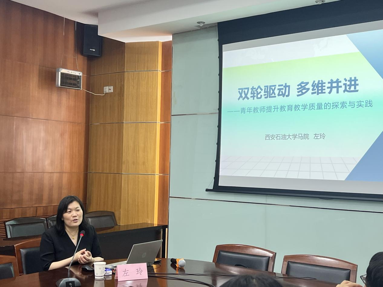 馬克思主義學院左玲教授作題為“雙輪驅(qū)動 多維并進——青年教師提升教育教學質(zhì)量的探索與實踐”主題分享,她圍繞教育變革背景下青年教師的時代使命、提升教育教學質(zhì)量的“1+2+3”路徑模式、青年教師未來發(fā)展的破界進階三大問題,聚焦“1”個核心能力、“2”個驅(qū)動引擎和“3”個支撐體系,結合20余年的從教經(jīng)驗與實踐案例,分享了自己豐富的課堂教學經(jīng)驗以及省級思政課教師“大練兵”活動參賽經(jīng)驗,探討青年教師如何從“破壁者”轉向“融合者”、邁向“引領者”的成長規(guī)劃與躍升策略,為與會教師提供了明晰的發(fā)展思路和有益的教學科研經(jīng)驗建議,助力青年教師在教學創(chuàng)新、科研轉化、社會服務中實現(xiàn)高質(zhì)量發(fā)展。