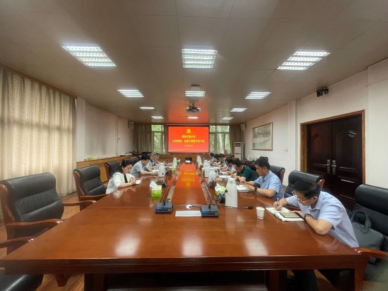 會議集中學(xué)習(xí)了《中共中央紀(jì)委關(guān)于加強(qiáng)新時代紀(jì)檢監(jiān)察隊(duì)伍建設(shè)的意見》、重溫了趙一德同志關(guān)于整治群眾身邊不正之風(fēng)和腐敗問題的指示批示、傳達(dá)了《中共西安石油大學(xué)委員會深化干部作風(fēng)能力提升年2025實(shí)施方案》。在研討交流環(huán)節(jié),紀(jì)檢監(jiān)察室苗成結(jié)合在中國紀(jì)檢監(jiān)察學(xué)院培訓(xùn)學(xué)習(xí)情況做了分享交流。