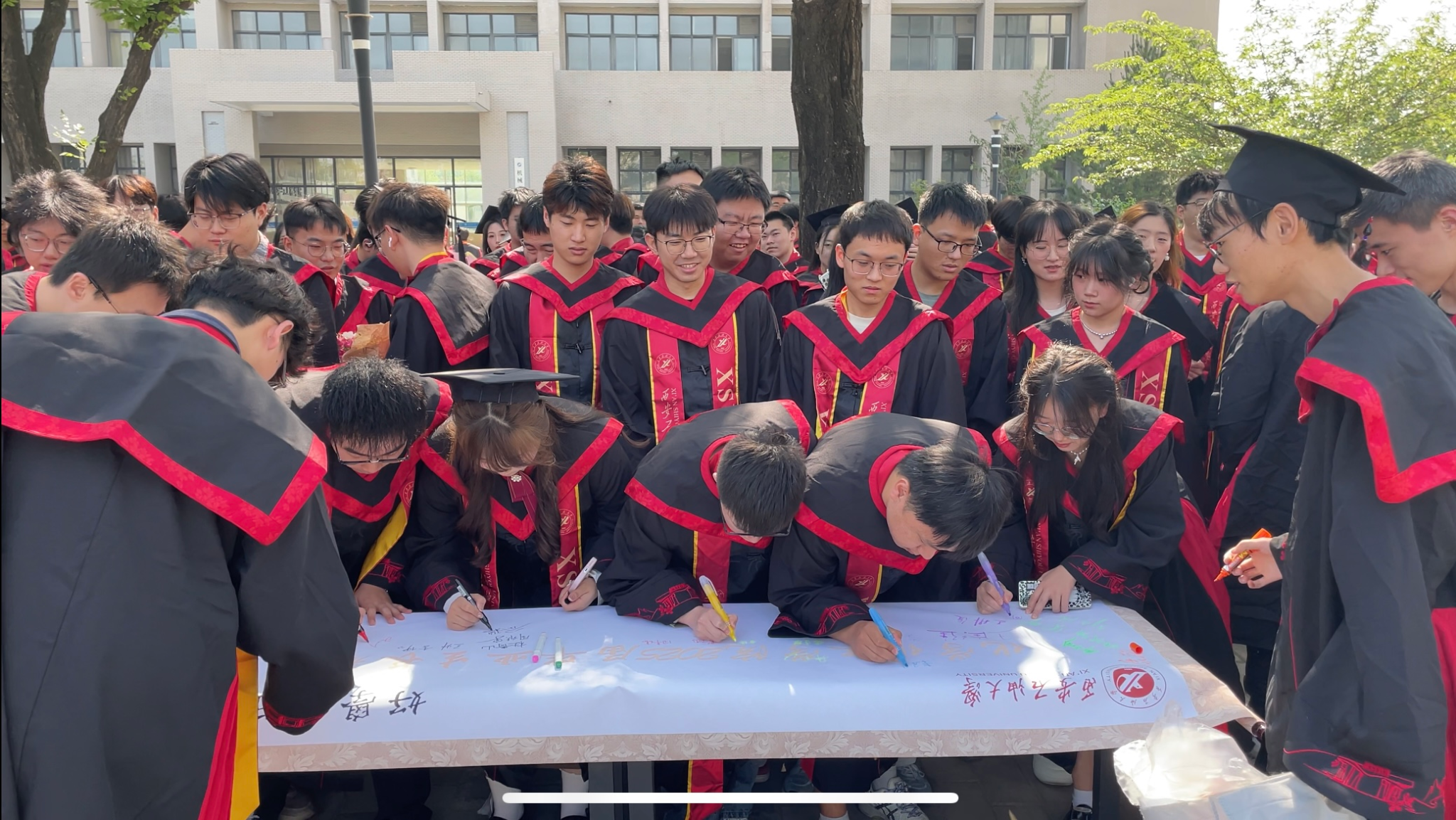 活動(dòng)現(xiàn)場(chǎng),長(zhǎng)長(zhǎng)的卷軸在廣場(chǎng)上徐徐展開(kāi),猶如一幅承載著青春記憶的畫(huà)卷。畢業(yè)生們紛紛拿起筆,在卷軸上鄭重簽下自己的姓名,一筆一劃,飽含著對(duì)母校的深深眷戀,也定格了大學(xué)時(shí)光的珍貴瞬間。