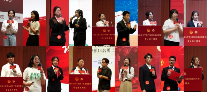 為充分展示青春風(fēng)采,激發(fā)青春活力,增強(qiáng)基層學(xué)生團(tuán)干部的業(yè)務(wù)能力和素養(yǎng),切實(shí)發(fā)揮以賽促學(xué)、以賽代練的作用,5月28日,由校團(tuán)委主辦,石油工程學(xué)院團(tuán)委承辦的我校第六屆團(tuán)干部素質(zhì)能力大賽(學(xué)生團(tuán)干部組)決賽暨青春風(fēng)采展示活動(dòng)在鄠邑校區(qū)弘石學(xué)術(shù)報(bào)告廳舉辦。校團(tuán)委副書記王軍策,學(xué)生工作部學(xué)生管理科科長(zhǎng)郭媛,校團(tuán)委組織部部長(zhǎng)付強(qiáng)、宣傳部副部長(zhǎng)李佩琦,石油工程學(xué)院學(xué)生工作辦公室副主任史陽(yáng)擔(dān)任比賽評(píng)委。